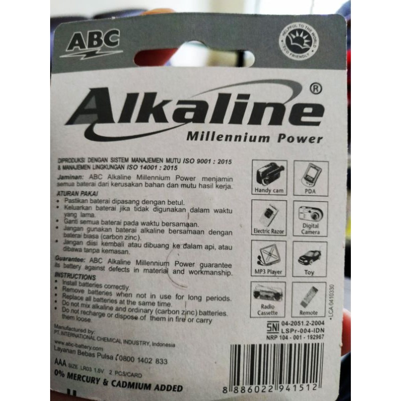 Alkaline ABC LR-03 MP Baterai AAA / AA 2Pcs baterai remote ac tv elektronik a3 TERMURAH sejagat raya