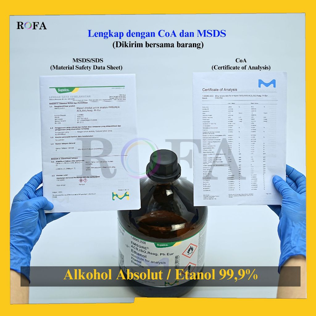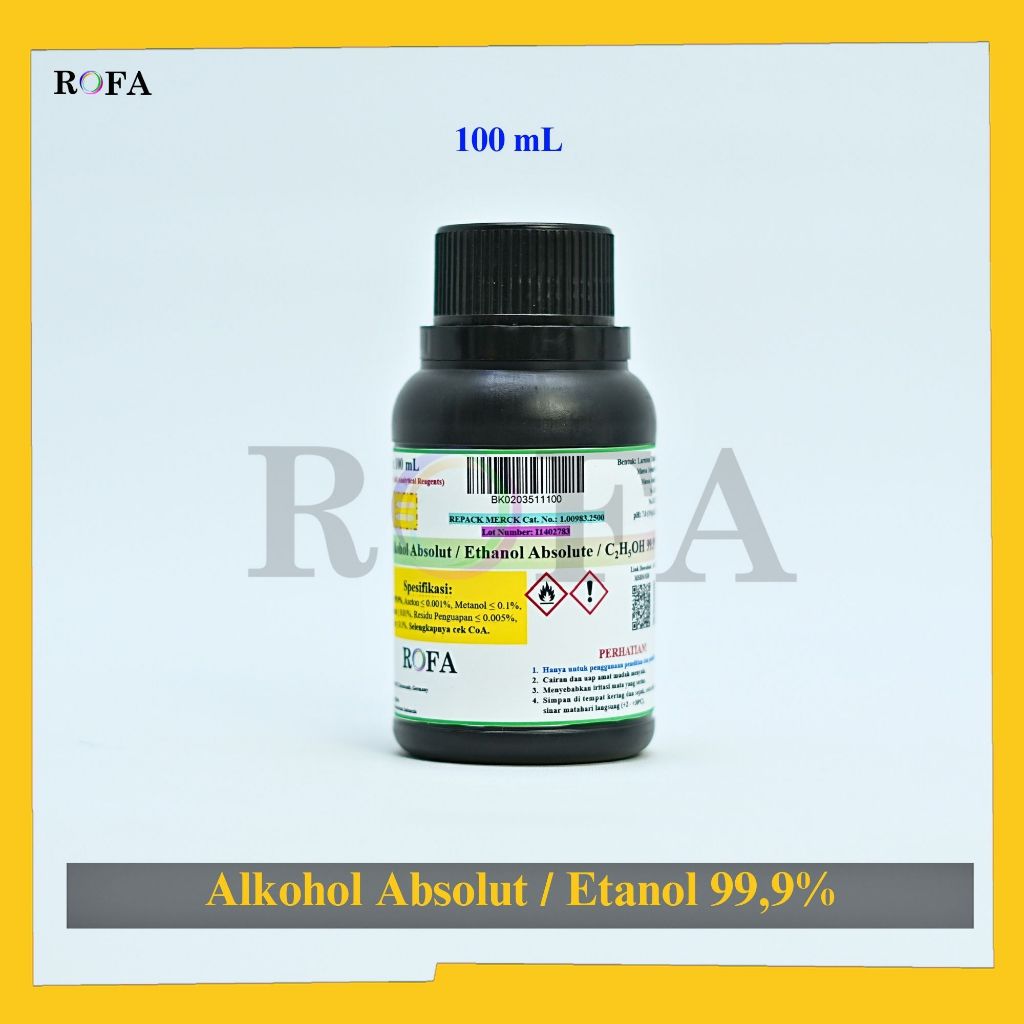 Alkohol Absolut / Etanol / Ethanol / Etil Alkohol / Ethyl Alcohol / C2H5OH 99.9% Pro Analisis Eceran 100 - 500 mL
