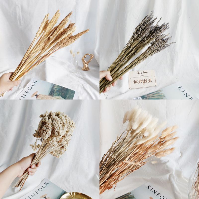 All dried flower, bunga kering, bunga ilalang, bunga edelweis, bunga cantel, bunga padi, lavender