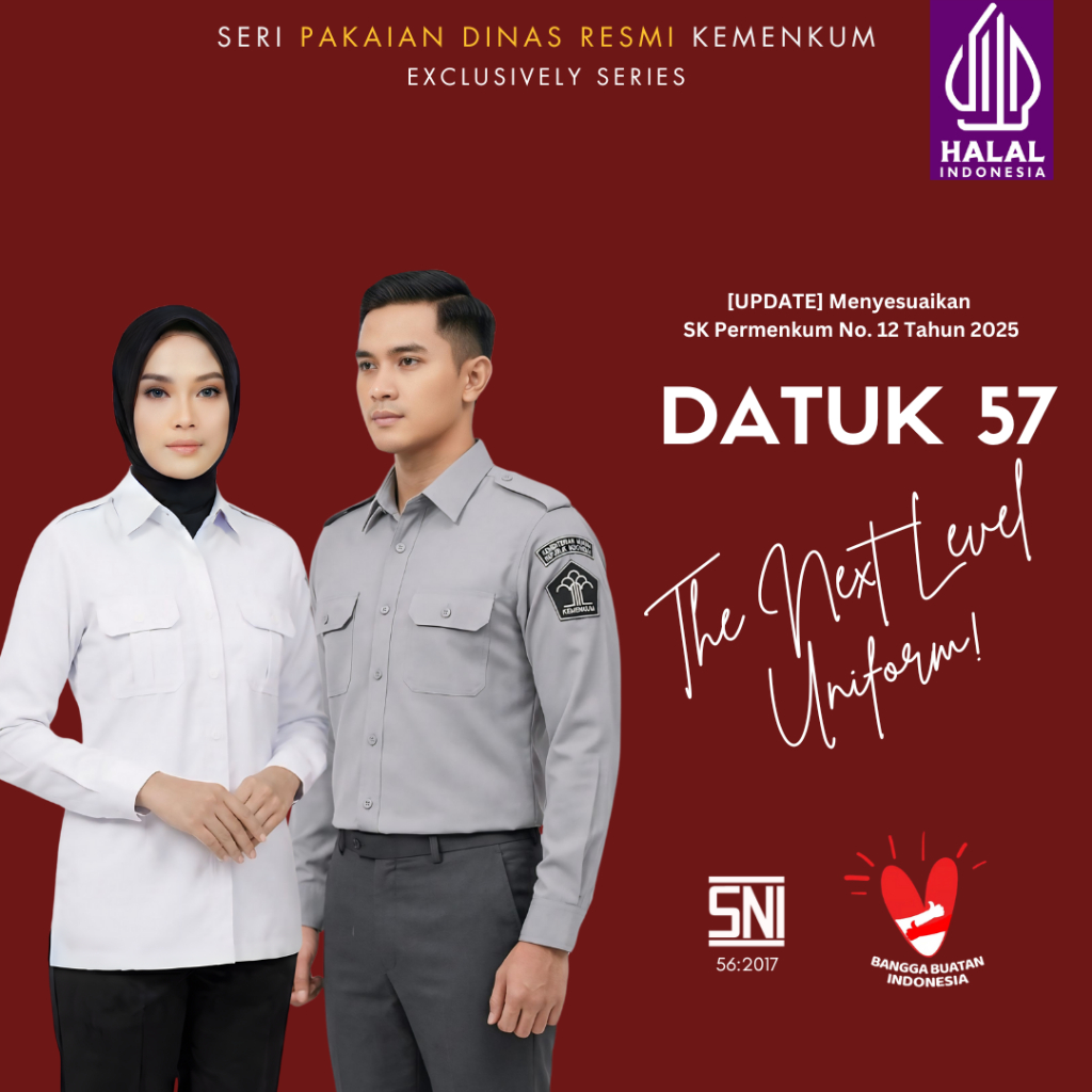 Original Datuk 57 Premium : Seragam Kemeja Baju Atasan PDH 1 PDH 2 PDH Safari Abu-abu & Putih untuk Kemenkum Kemenkumham Kementerian Hukum Departemen Hukum untuk Pria