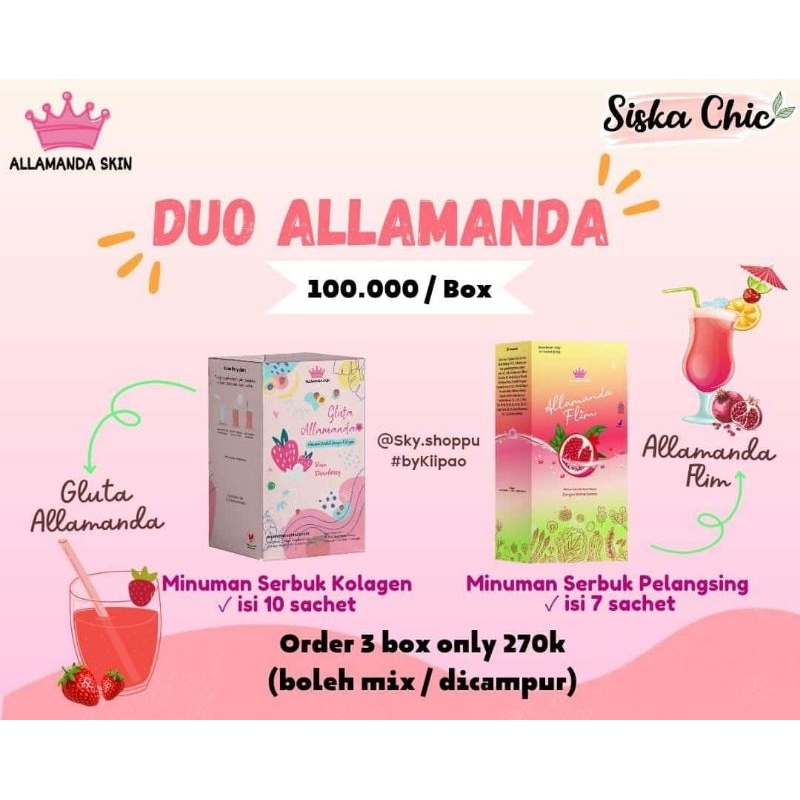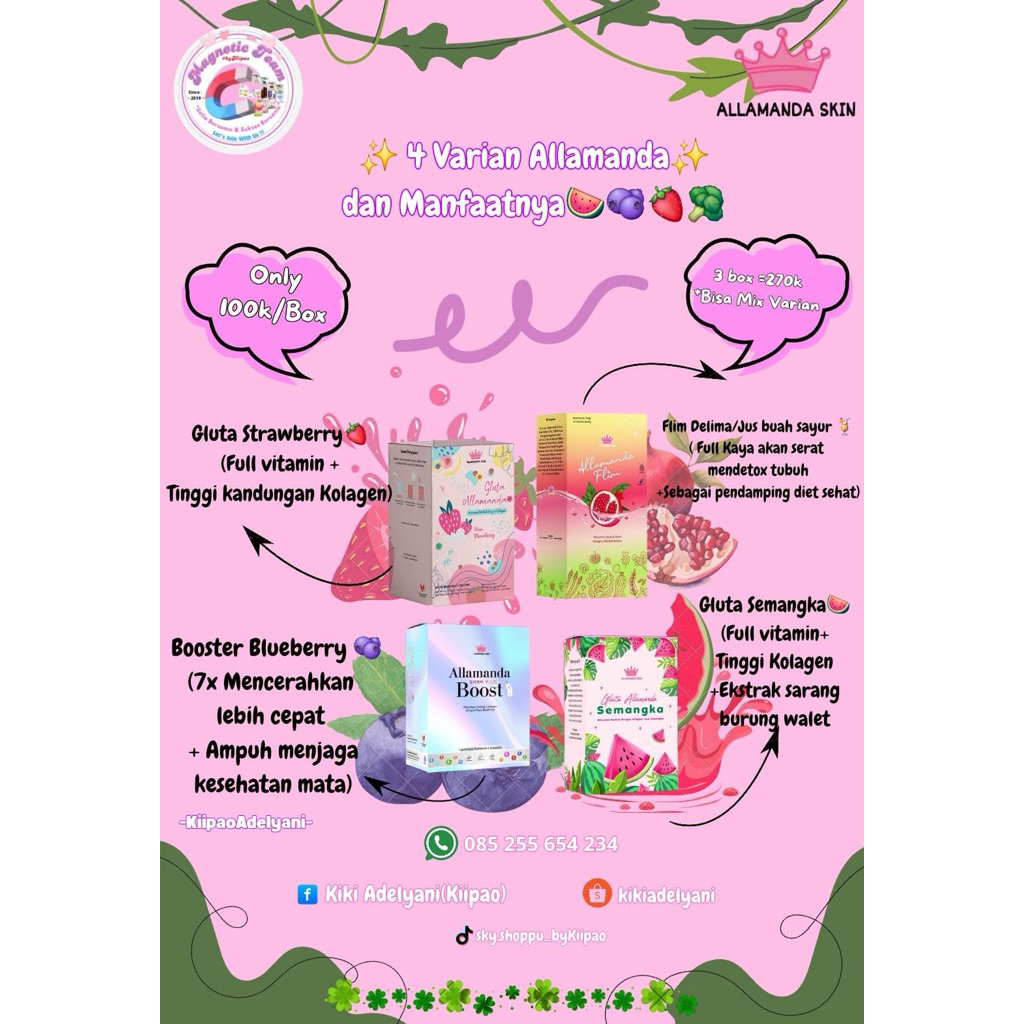 Allamanda 4 varian ; Gluta Stroberi, Gluta Semangka, Flim, Booster dan Serum Retinol (bisa Ecer / Grosir