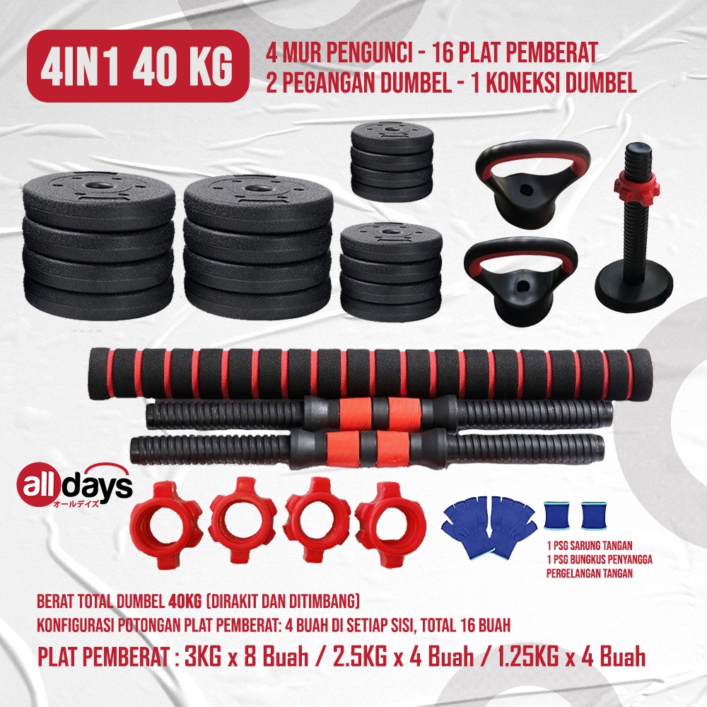 Alldays Dumbell Set 40KG / Alat Angkat Besi / Barbel / Alat Fitness Rumah /Alat Angkat Beban