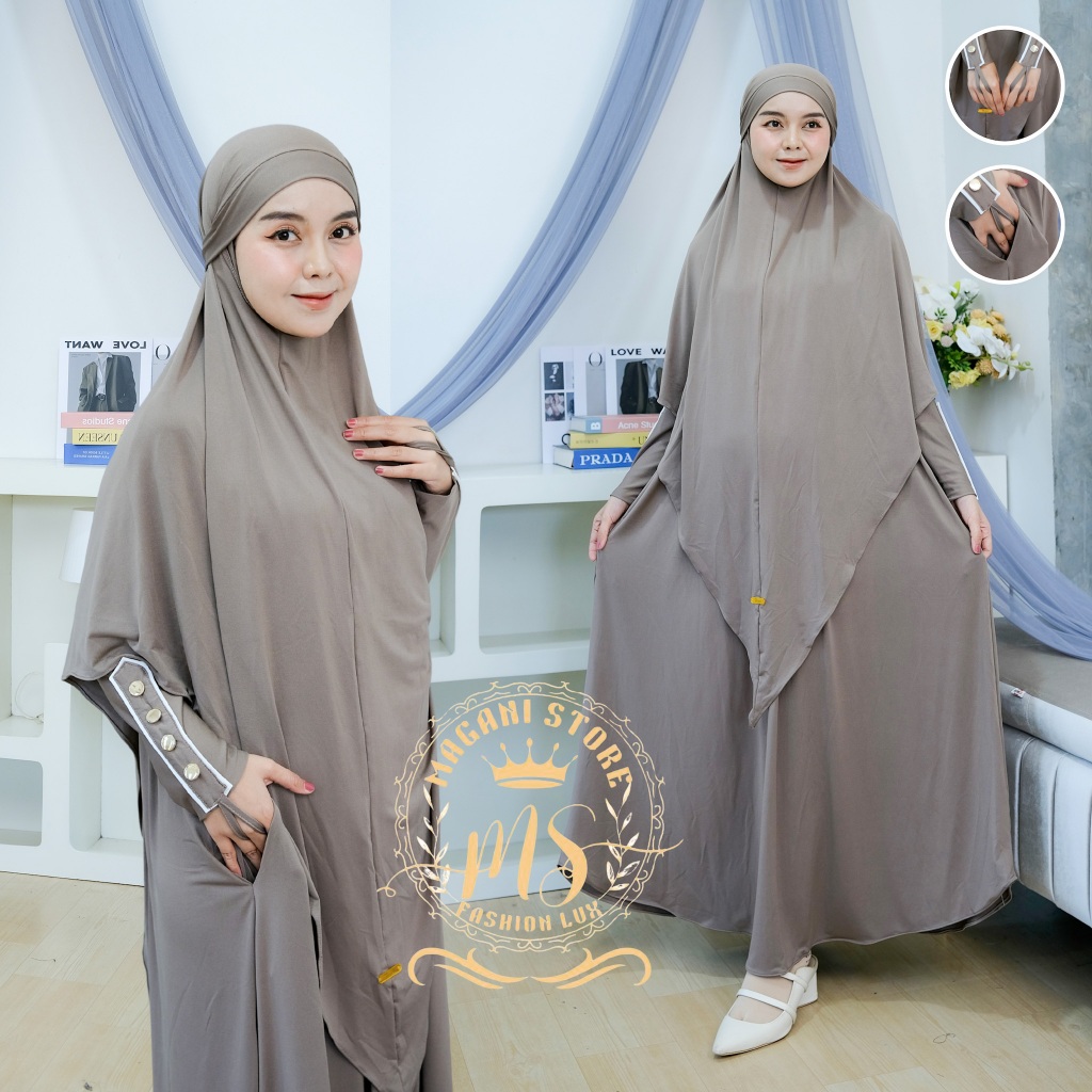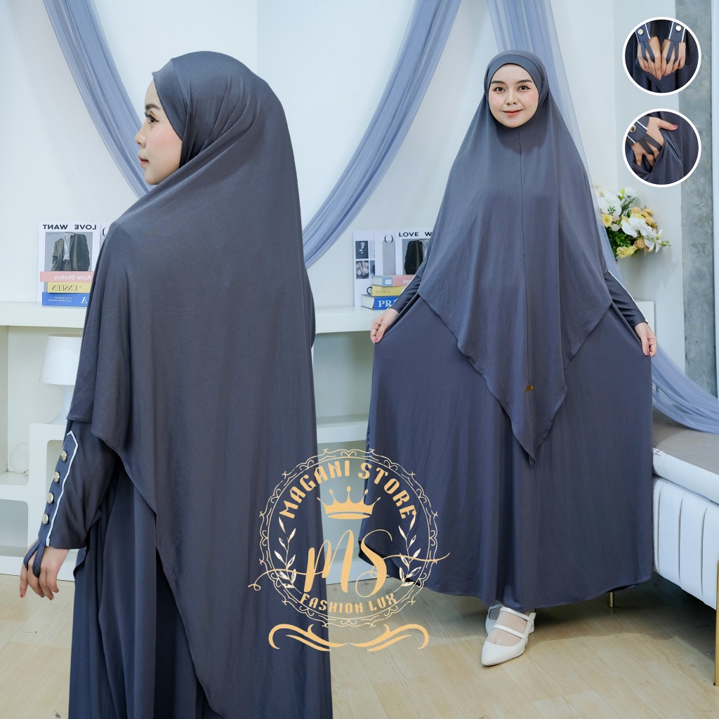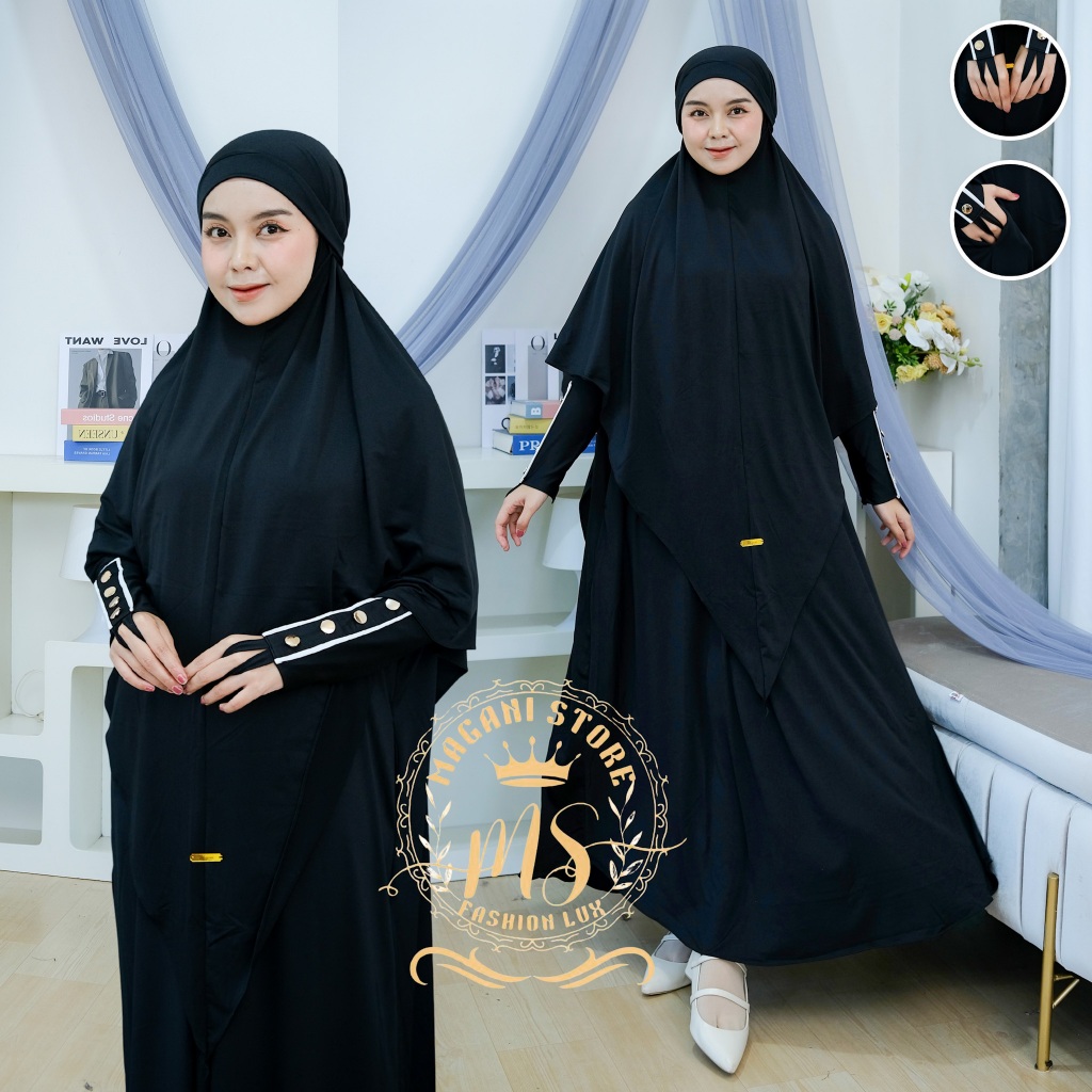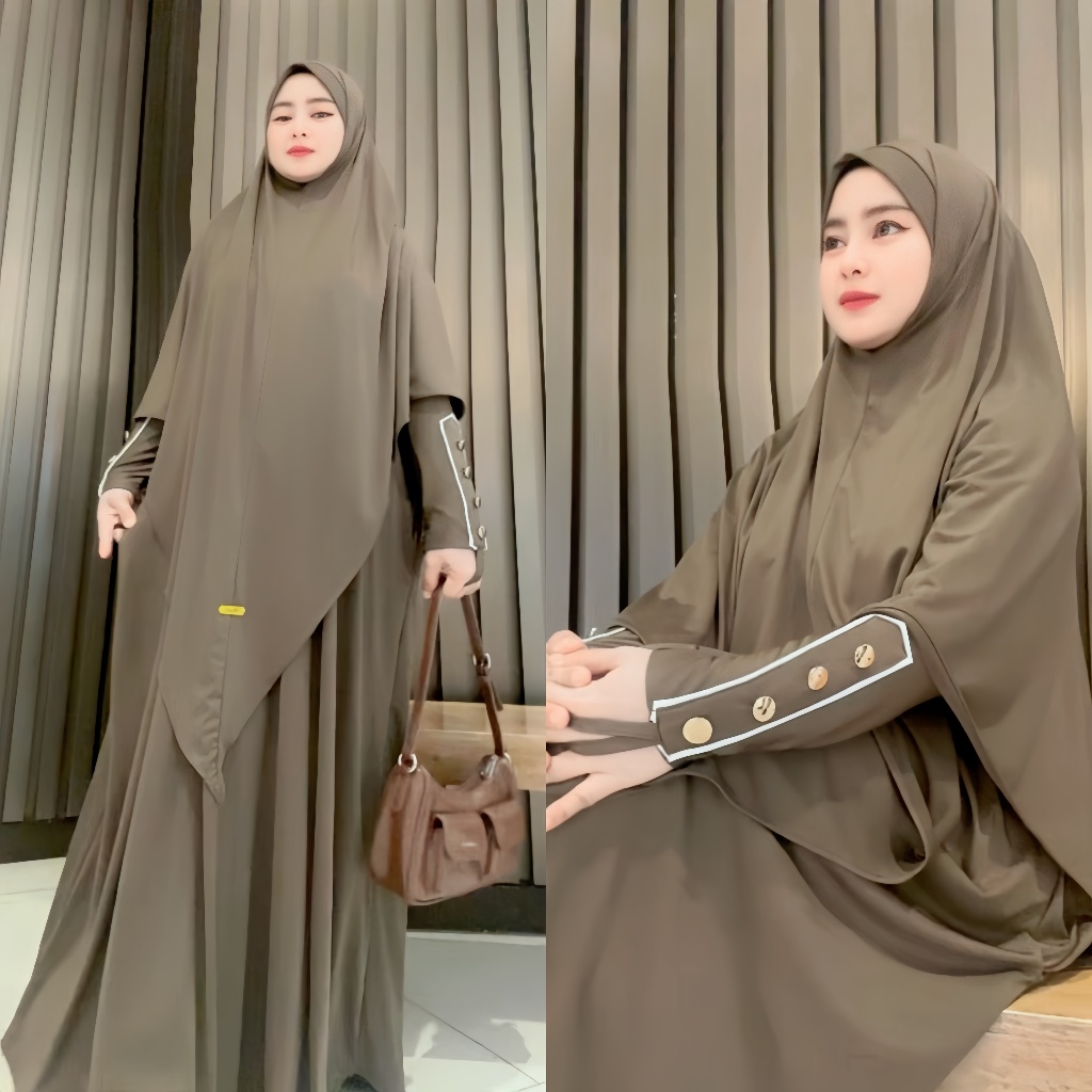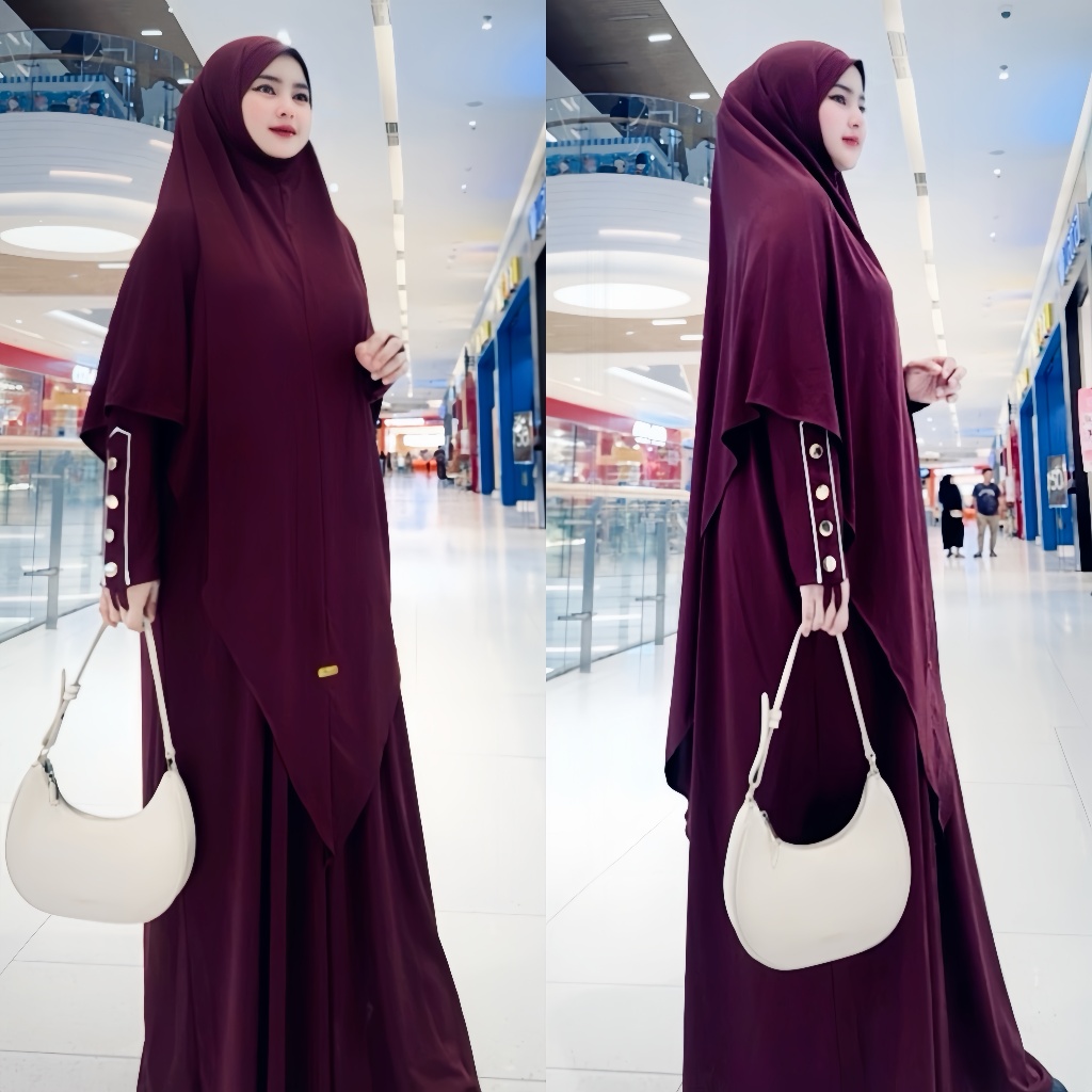 Almahyra Abaya Set Khimar Syar’i x Raytwins89 Bahan Jersey Premium, Gamis Arab, Umroh Haji Basic,