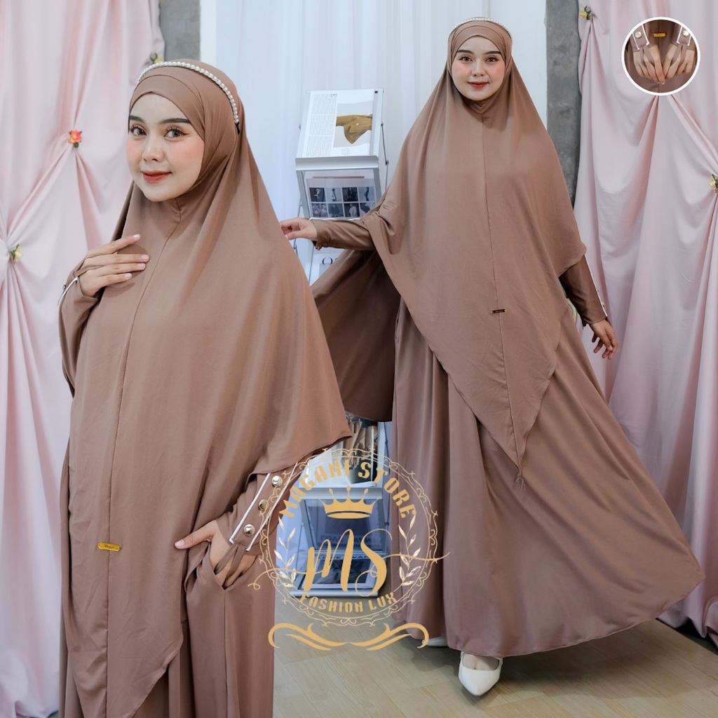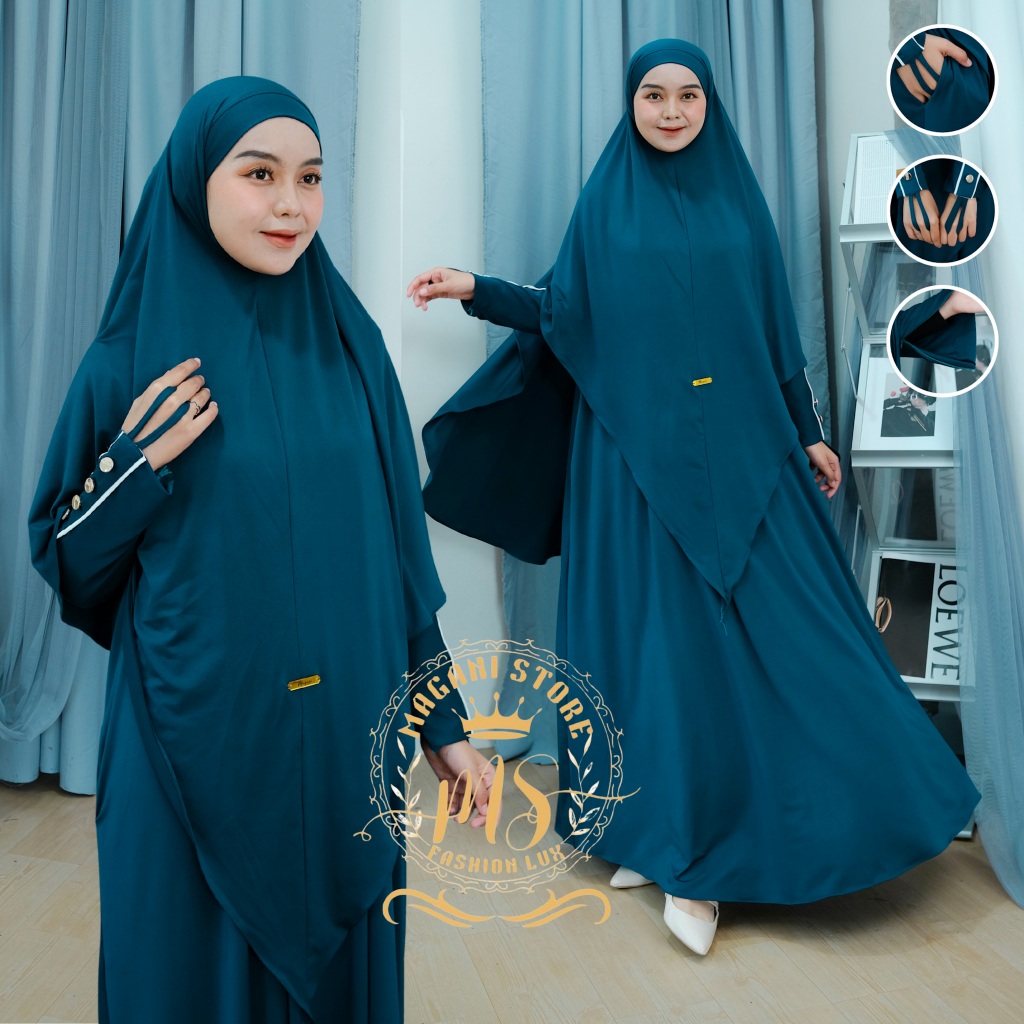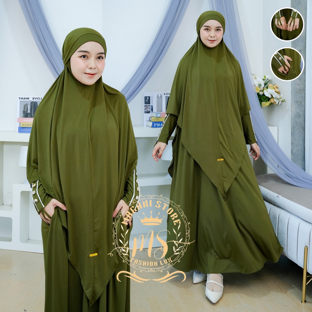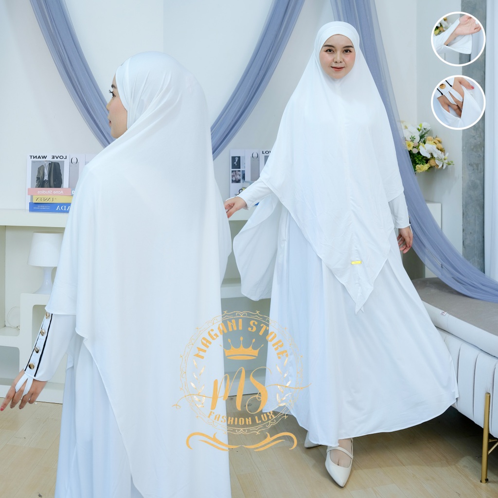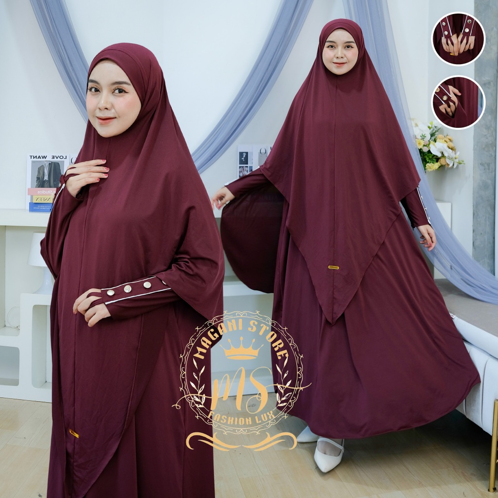 Almahyra Abaya Set Khimar Syar’i x Raytwins89 Bahan Jersey Premium, Gamis Arab, Umroh Haji Basic,