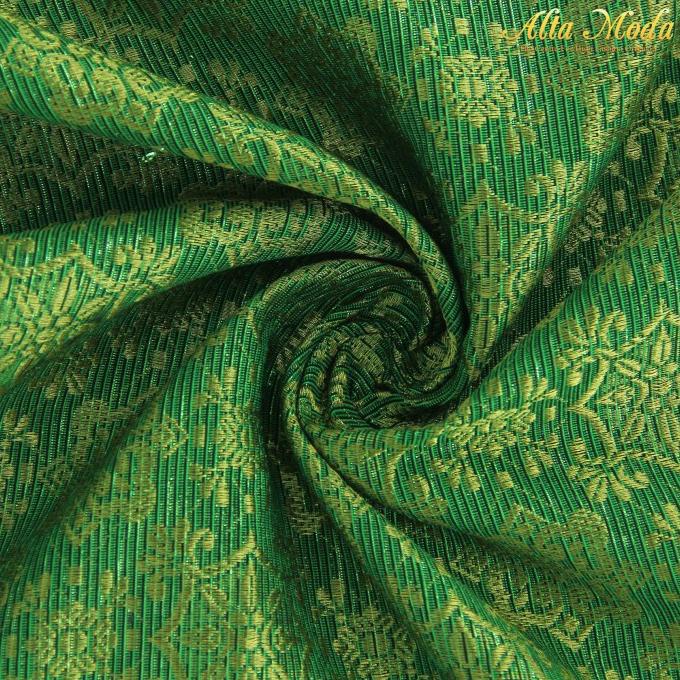 Alta Moda Songket Motif Palembang Hijau Emerald Mix Benang Gold (1M)
