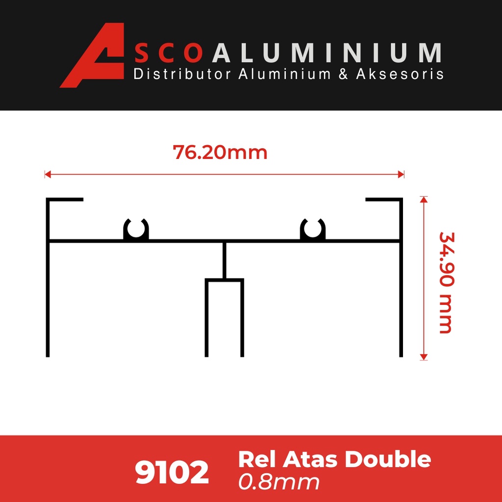 Aluminium Rel Atas Double Profile 9102 Sliding Door