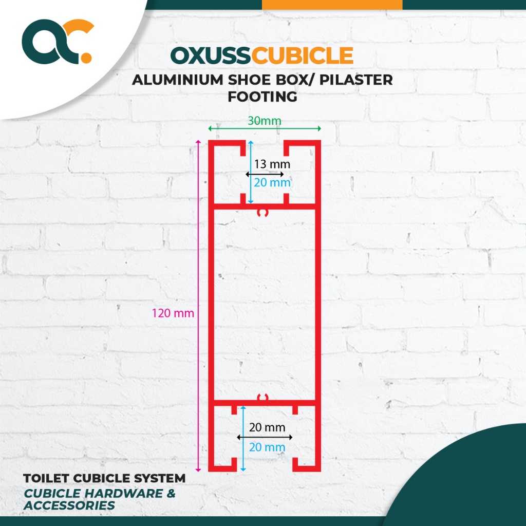 Aluminium Shoe Box Pilaster Footing Dudukan Kaki Partisi Cubicle Hitam