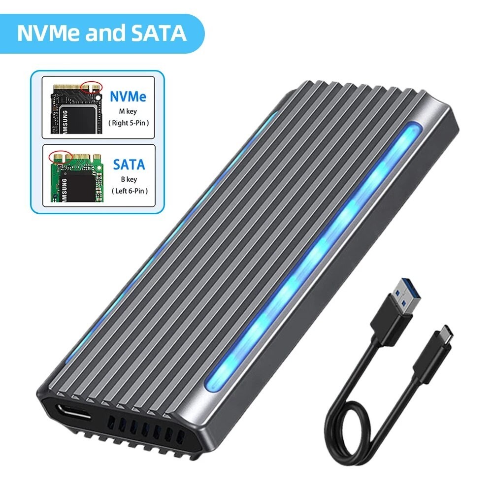 Aluminum Alloy RGB M.2 SSD Case NVME SATA Dual Protocol M.2 to USB Type C 3.1 SSD Adapter for NVME PCIE NGFF SATA M2 SSD Box