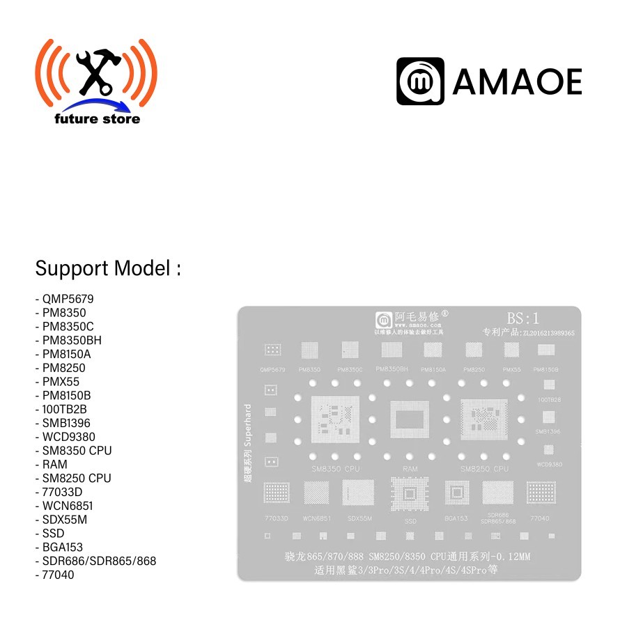 Amaoe BS 1 Cetakan IC BGA Reballing Stencil For Xiaomi Black Shark 3/3S/4/4S Pro SM8350 SM8250 CPU Tin Plant Net Cetakan IC Amaoe BS 1 Original