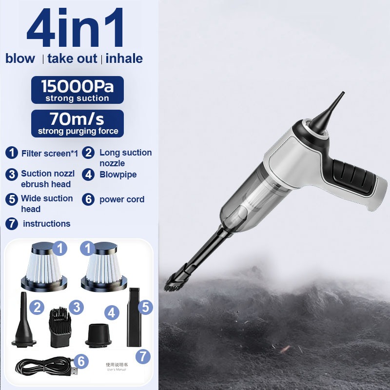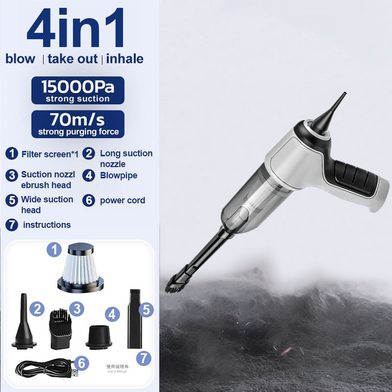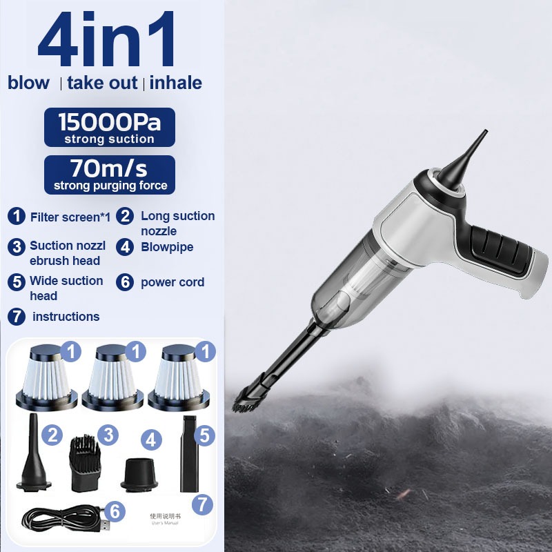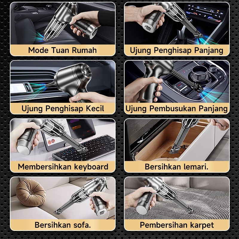 AmazeFan 4in1 Vacuum Cleaner 15000Pa Penyedot Debu Mini Tanpa Kabel Vakum Pembersih Sedot Debu Rumah 120000rmp Air Duster Blower Vakum Debu Mobil