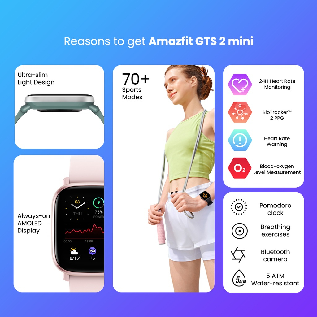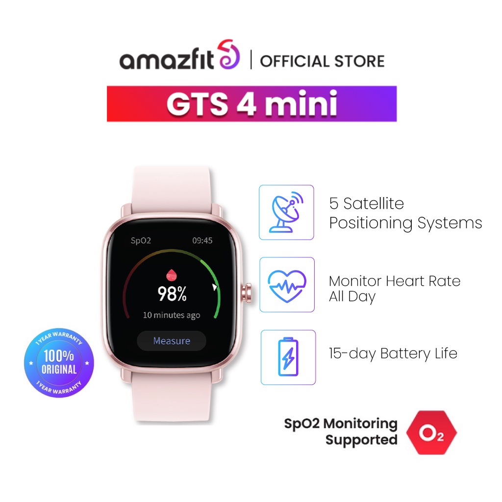 Amazfit Official GTS 2 Mini Smartwatch 1.55" AMOLED Screen GPS Jam Tangan 5 ATM Waterproof 70 Sports Modes SpO2 14 Days Battery Life Heart Rate Sleep Stress