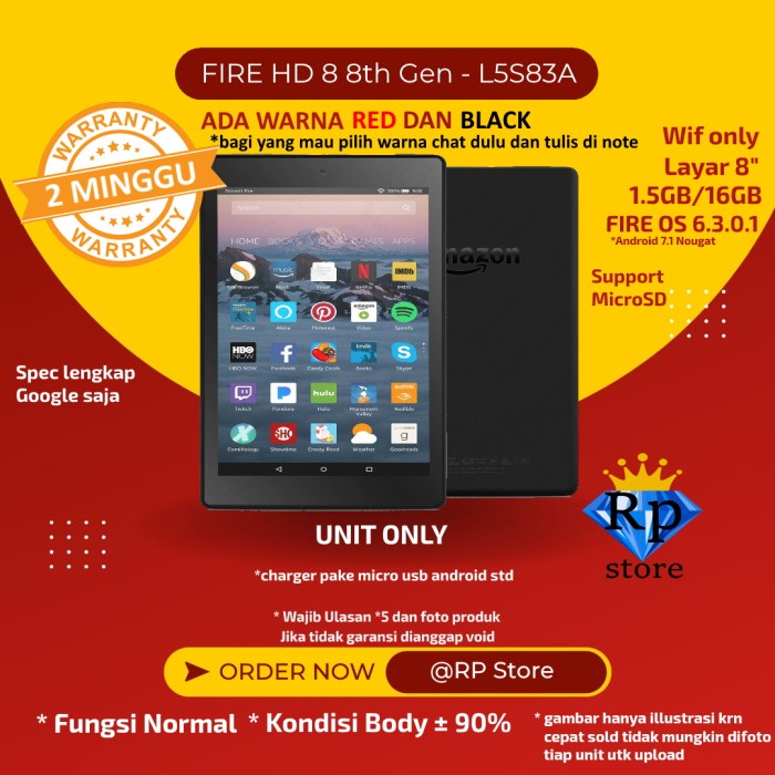 Amazon fire 7 HD 8 10 plus Kindle Fire Tablet Android Bekas 8GB 16GB 32GB 64GB