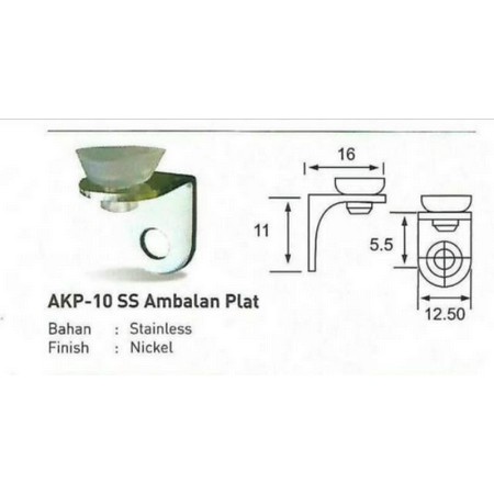 Ambalan Siku L untuk Lemari Kayu/Tatakan Kaca AKP-10mm SS Stainless