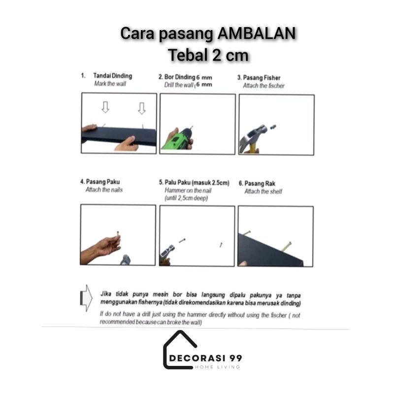 Ambalan dinding Panjang variasi 120,150,180,200 cm, Lebar 15 cm, Lebar variasi 2 cm & 4 cm / Ambalan decorasi foto / ambalan dinding minimalis / Rak buku / Rak decorasi maenan / Rak Bumbu.