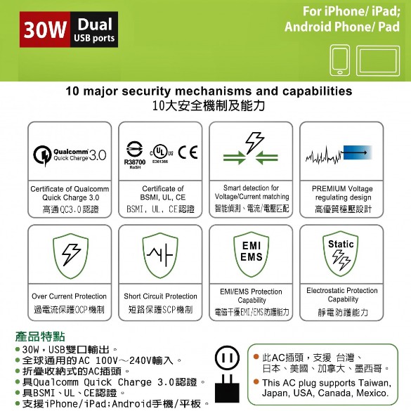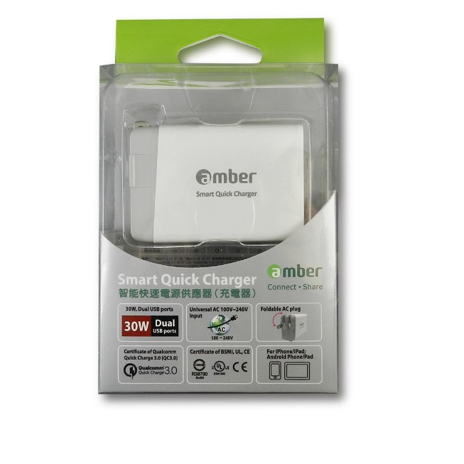 Amber APC-03 - Car Charger with Type-C, QC 3.0, Support Qualcomm