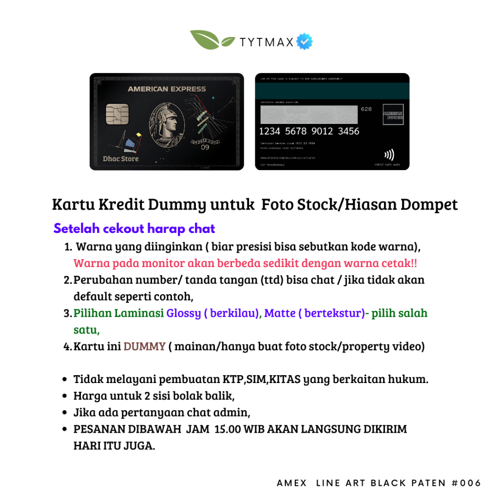 Amex Line art black paten #006 / Dummy Credit Card / Fake Premium ID Card