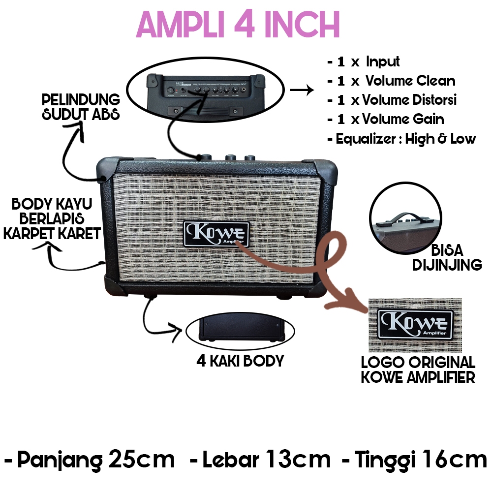 Ampli Gitar Mini 4 Inch Original Merk Kowe