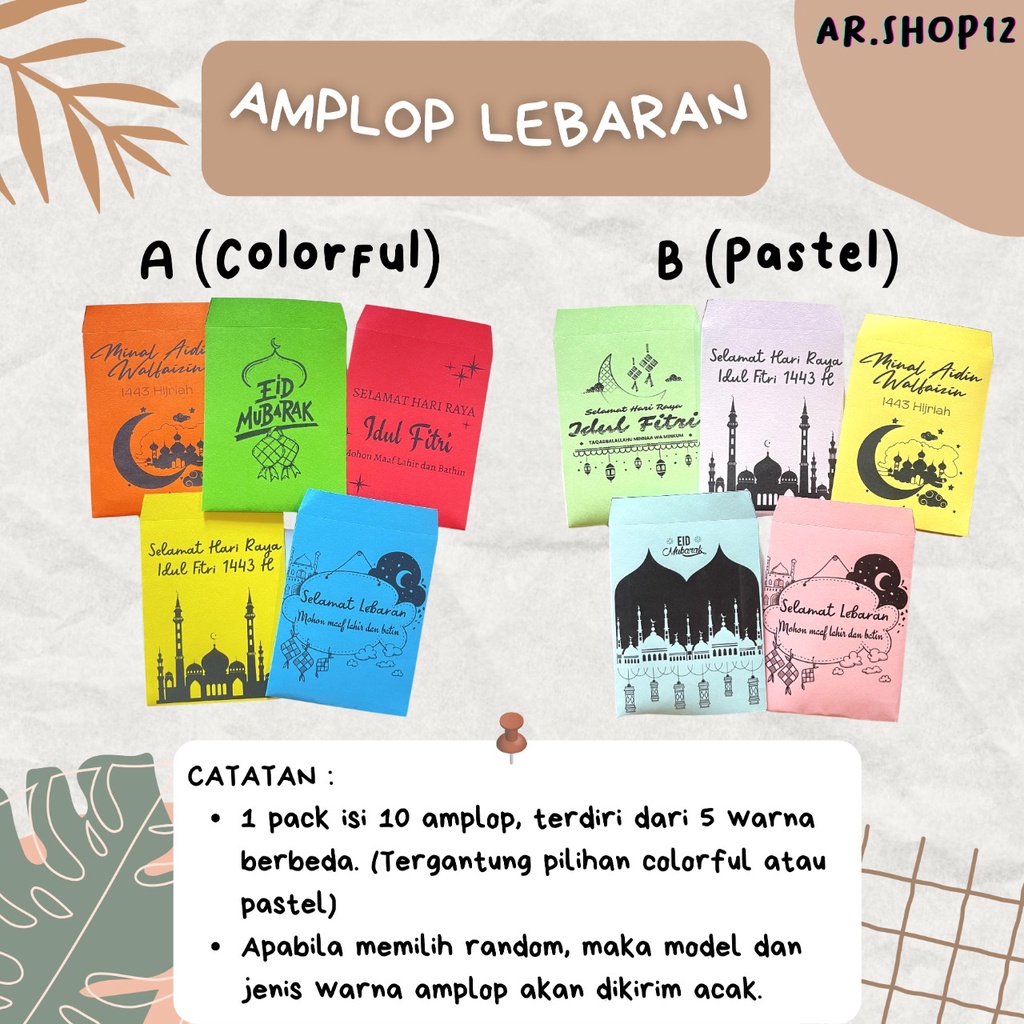Amplop / Amplop Lebaran Idul Fitri Terbaru 2024 1 Pack isi 10 (Uang dilipat)