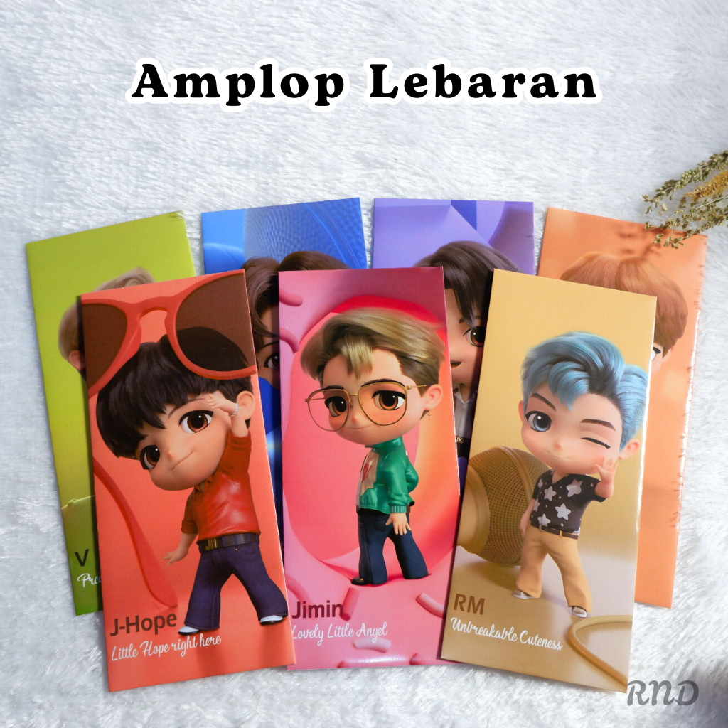 Amplop / Angpao Serbaguna Lebaran Idul Fitri 2026 Tanpa Melipat Uang Premium Karakter K-pop / BTS / BT21/ Tinytan Unik dan Lucu, Gratis Perekat
