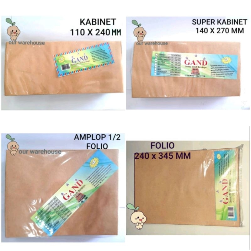 Amplop Coklat Kabient, Super Kabinet, Kwarto, 1/2 Folio, A4, Folio Satuan
