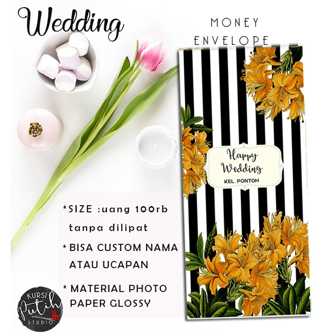 Amplop Uang buat kondangan lebaran motif dark flower bisa custom nama