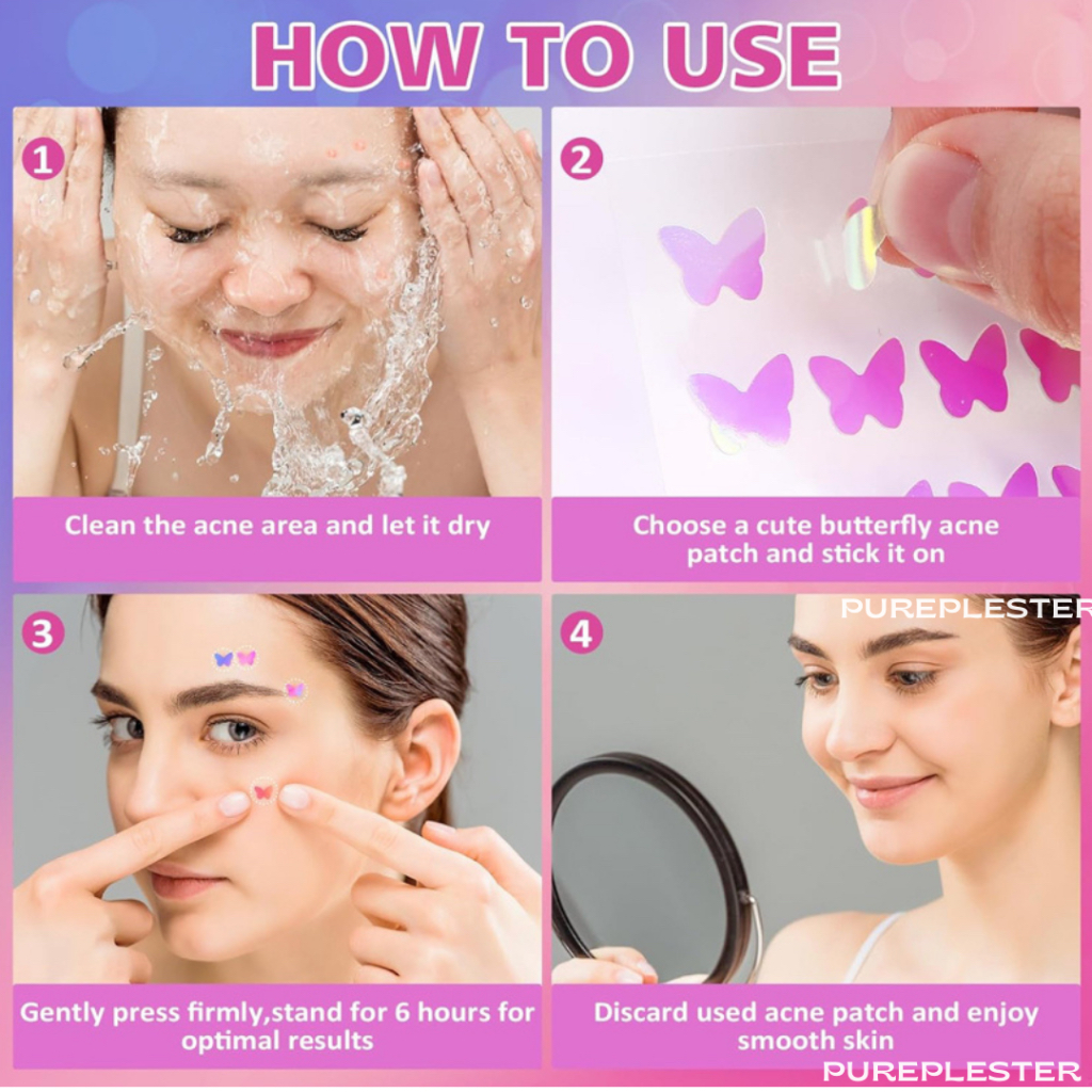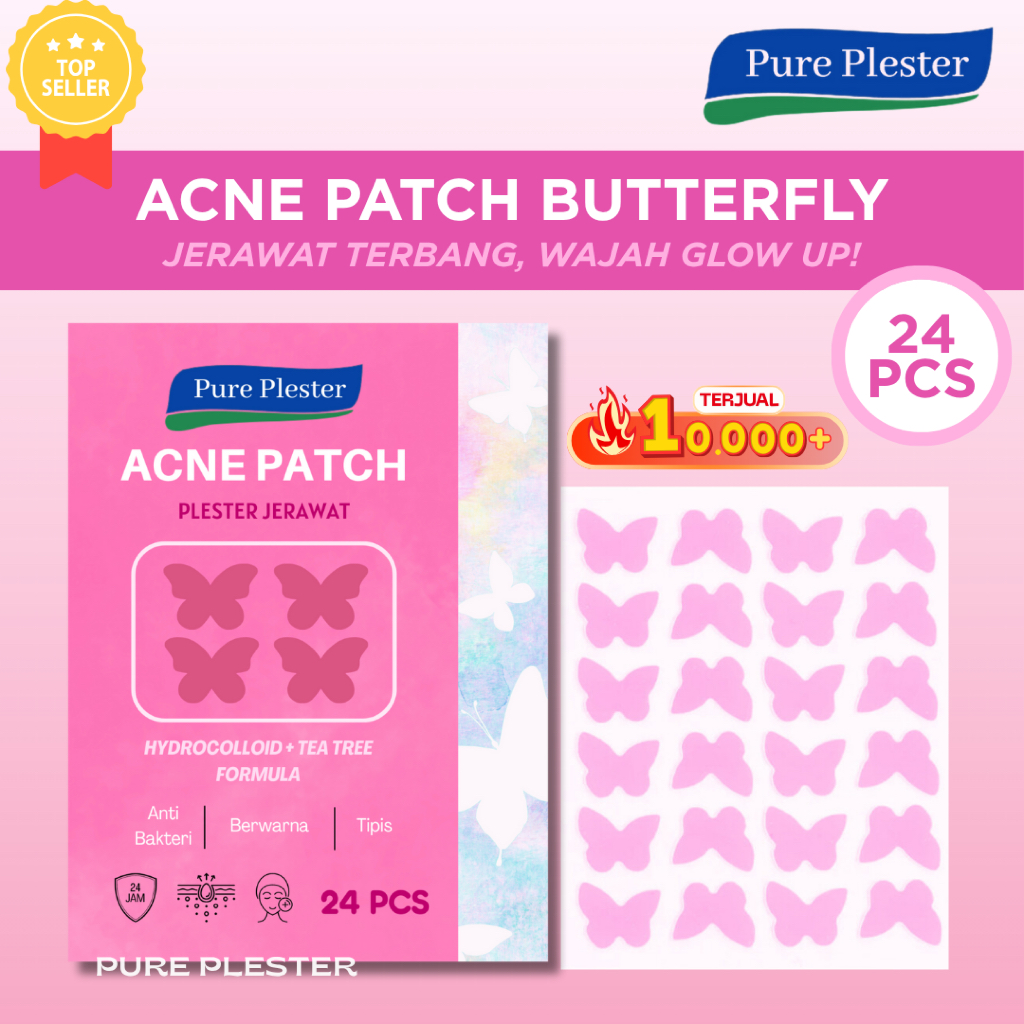 Acne Patch Butterfly Pink / Plester Jerawat Kupu Kupu Merah Muda 24 Patch - Hydrocolloid Formula