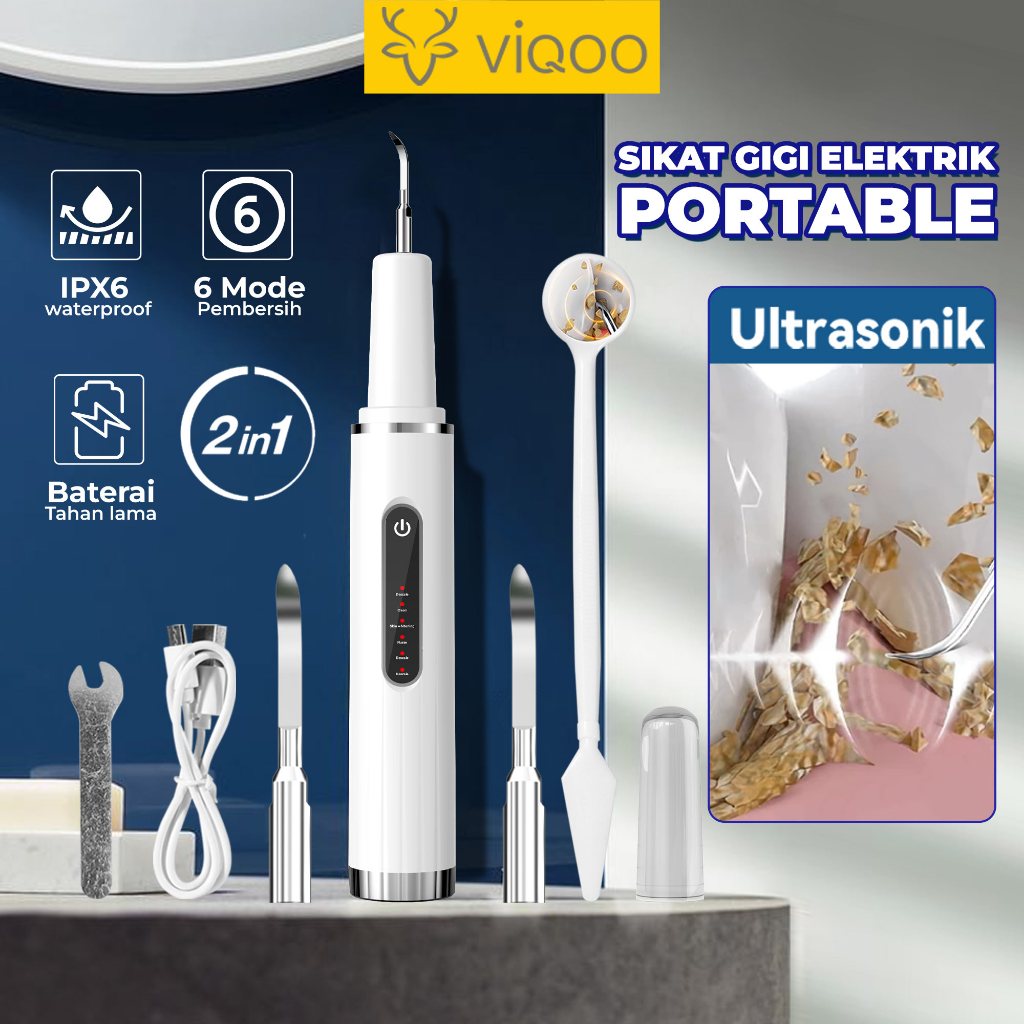[COD] Viqoo 6 Modes Dental Scaling Alat Pembersih Karang Gigi Baja paduan kelas makanan Sonic Elektrik 1 Set Pembersih Karang Gigi Dental Remover With Light - DE06
