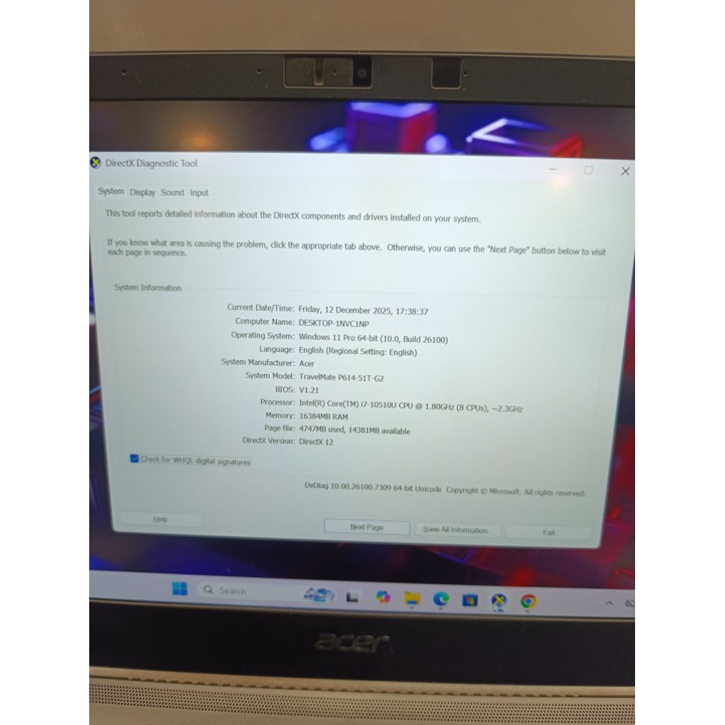 Laptop Acer Travelmate P614-51-G2 Touchscreen Core i7 10510u (10th Gen) Ram 16GB Ssd 1TB Layar 14in Slim Mulus Ringan