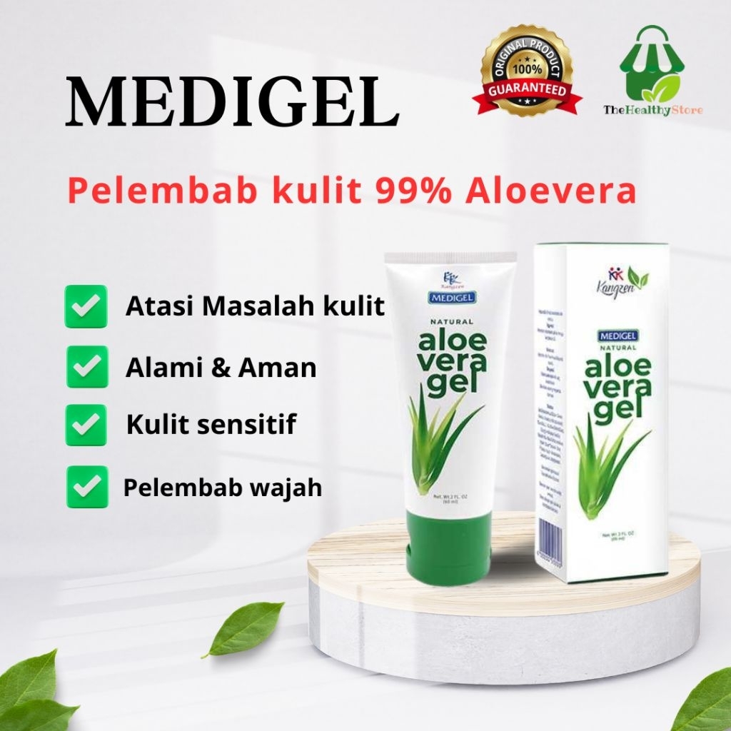 Kangzen Medigel Aloe Vera 99% 60ml | Gel Lidah Buaya Asli Untuk Jerawat, Kulit Sensitif & Lembab Alami – Cepat Meresap, Tidak Lengket