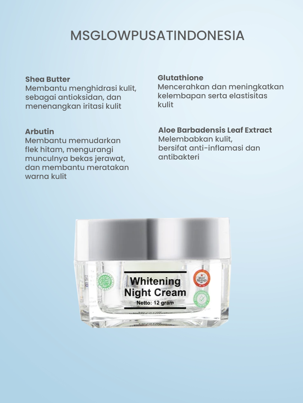 MS GLOW - WHITENING NIGHT CREAM - 12 GR - ORIGINAL 100% BPOM