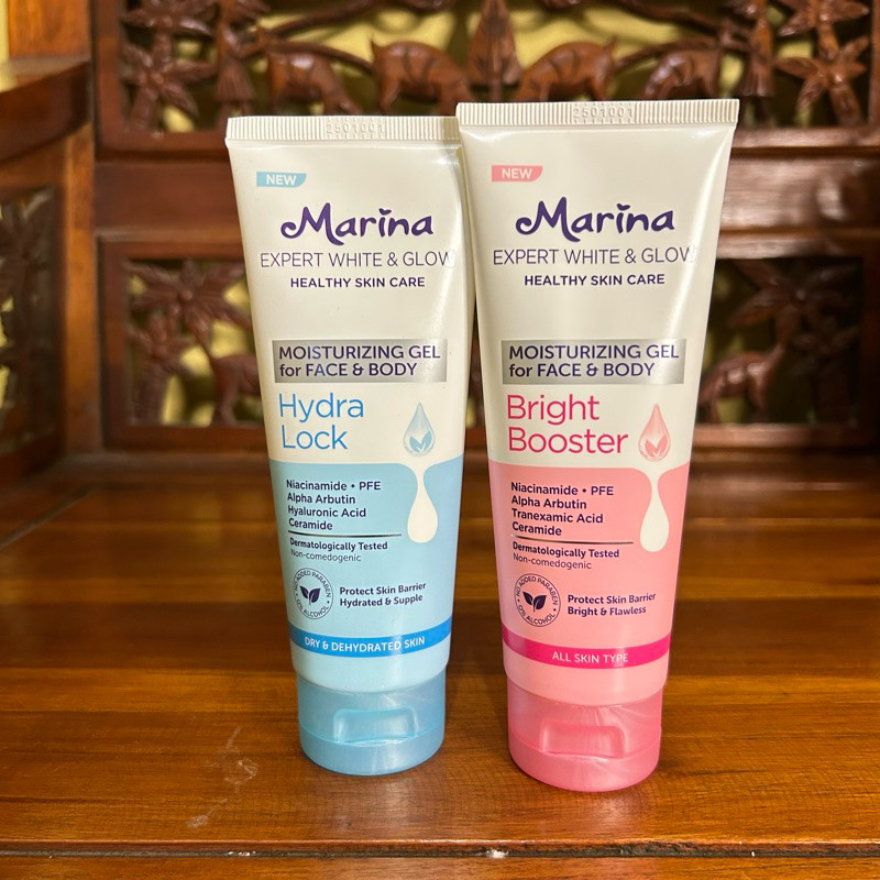 Marina Expert White & Glow Moisturizing Gel For Face & Body 100ml - Bright Booster & Hydra Lock