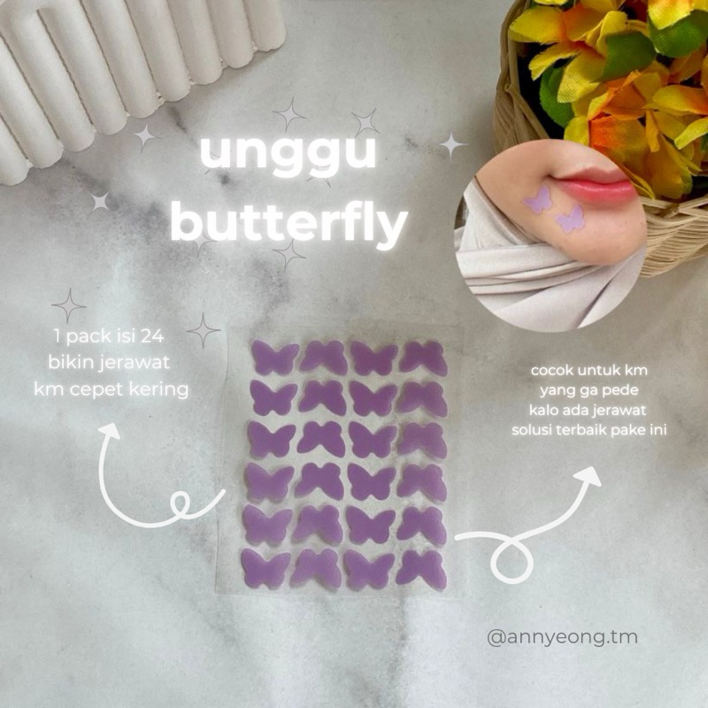 [24 PCS] Acne Patch Butterfly Purple - Sticker Jerawat Karakter Kupu Kupu Berwarna Ungu - Hidrokoloid