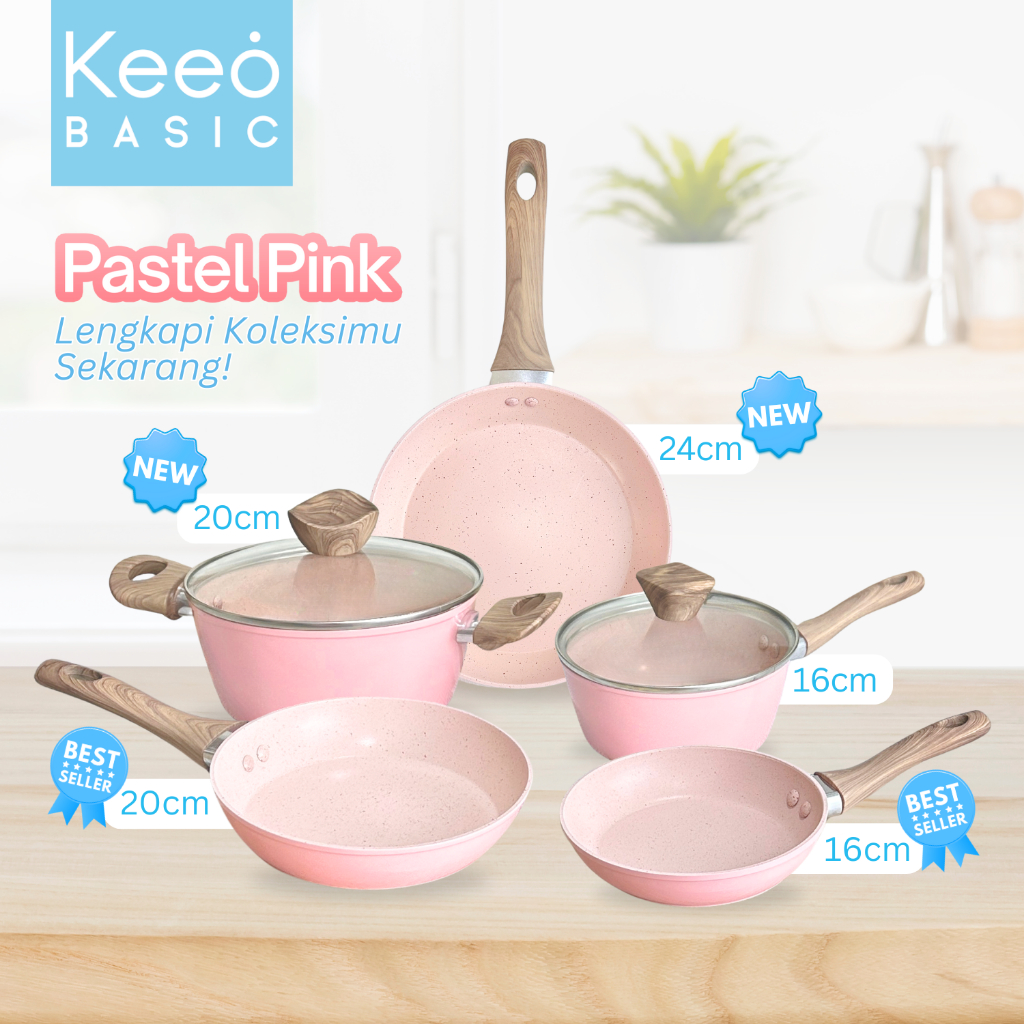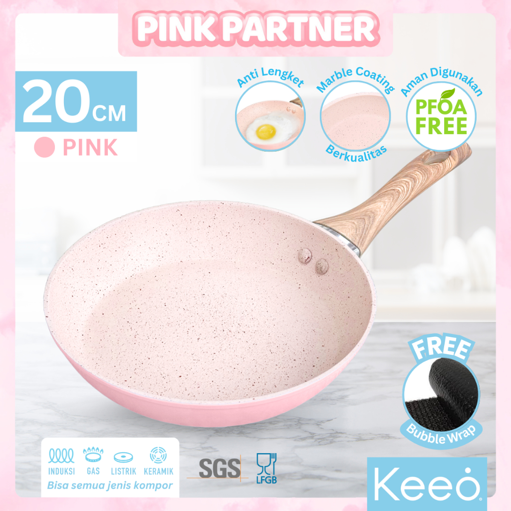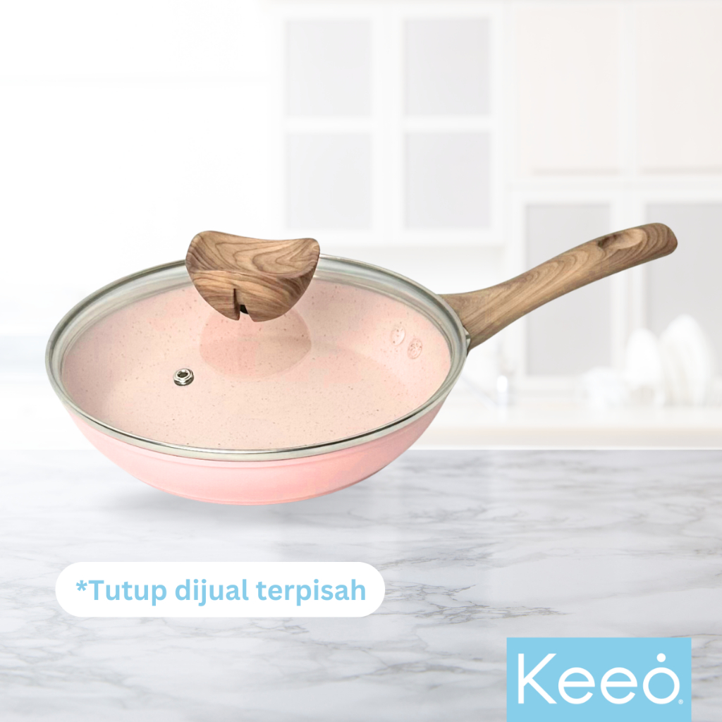 Keeo 20 cm Wajan Teflon Penggorengan Frypan Anti Lengket Marble Granit Pink