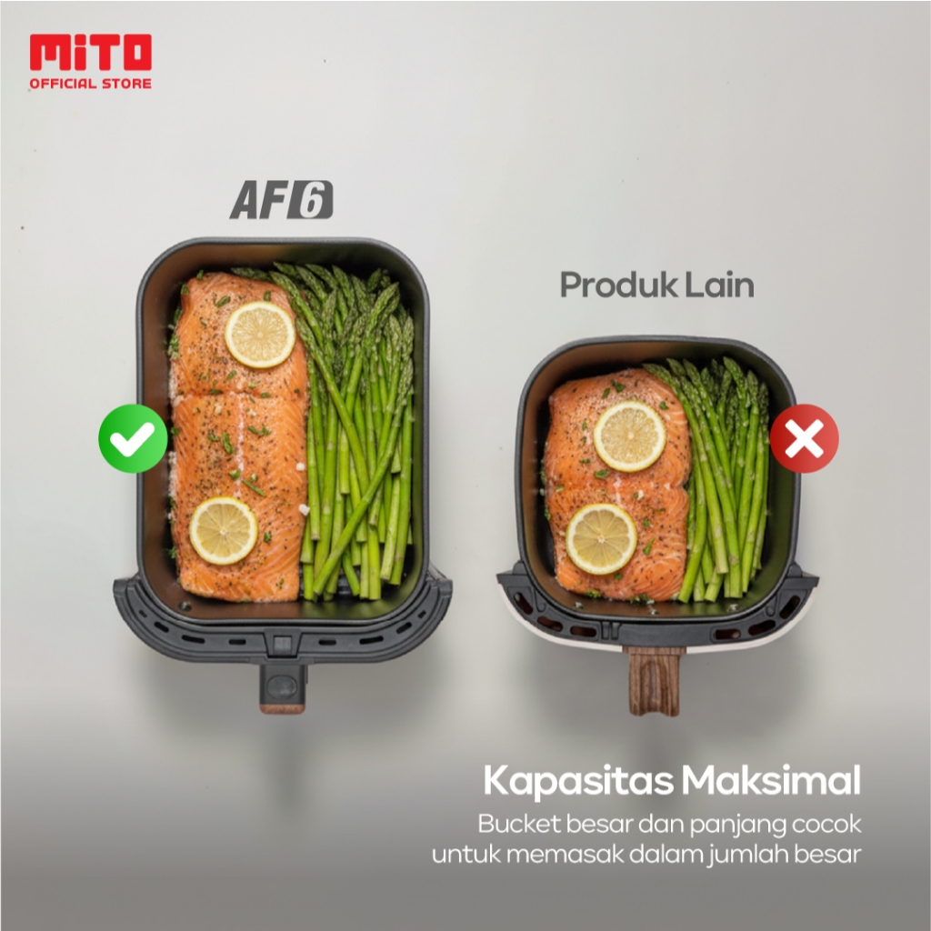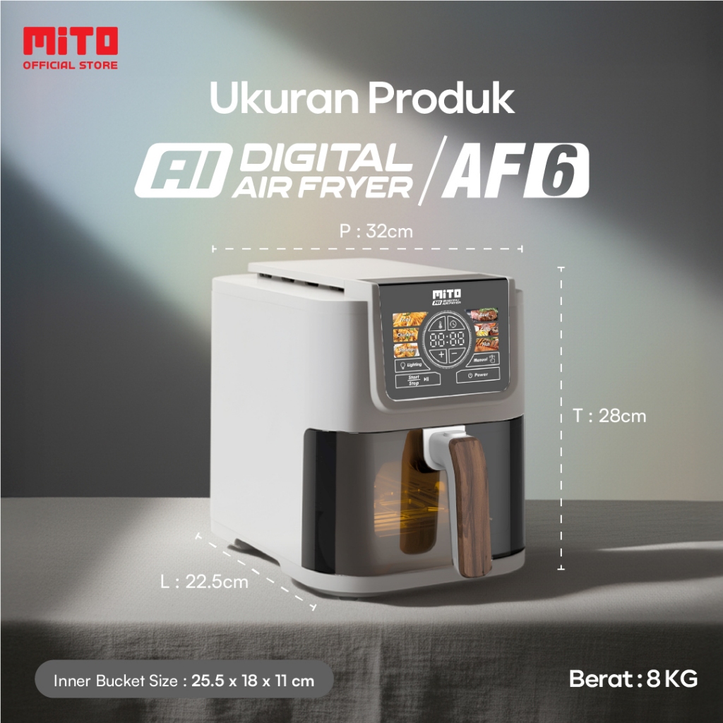 MITO Air Fryer AF6 Smart AI-Fryer Digital, Low Watt, 5L Semi Transparan, Touch Screen LED