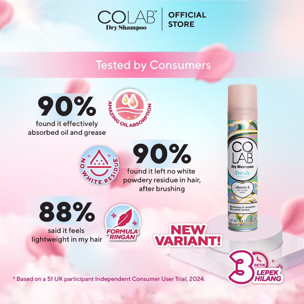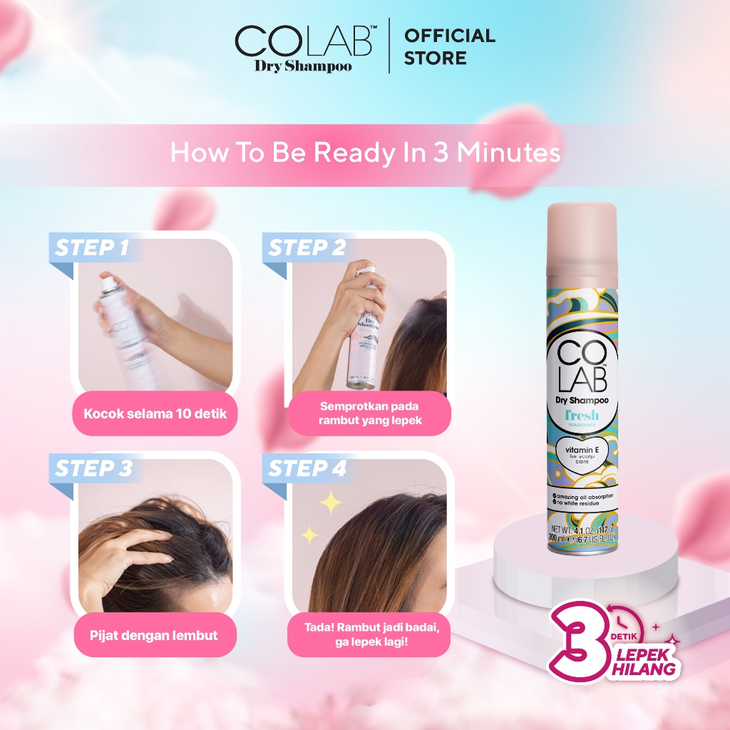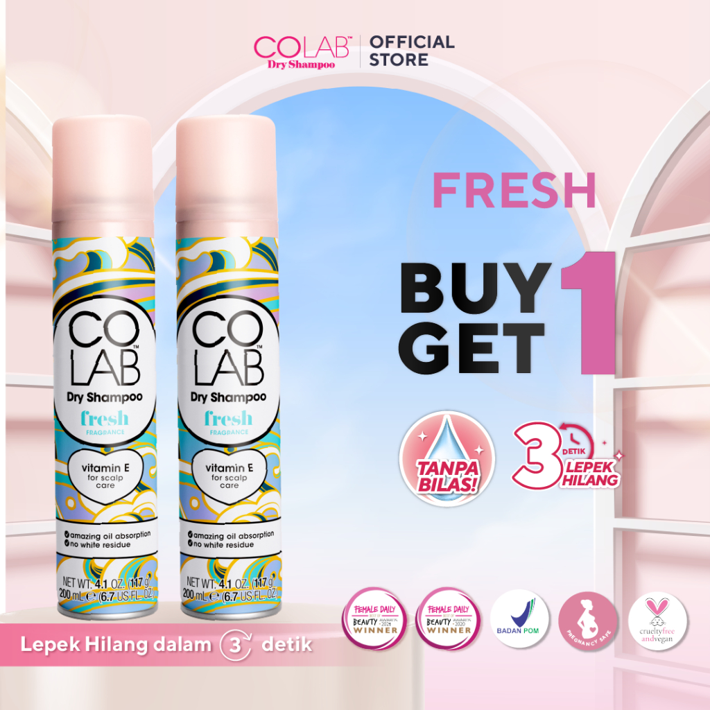 BUY 1 GET 1 COLAB Dry Shampoo Fresh 200ml "Dry Shampoo Tanpa Residu Putih" / Bisa Digunakan Pagi Hari Untuk Rambut Yang Lebih Volume / Dry Shampoo Tanpa Residu Putih / Atasi Rambut Lepek / Dry Shampoo Spray / Dry Shampoo Cocok untuk Hijab