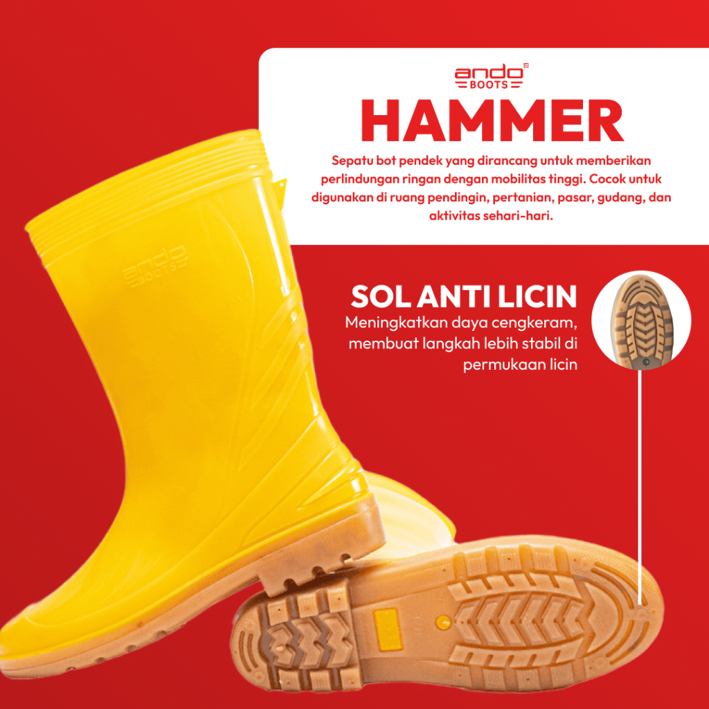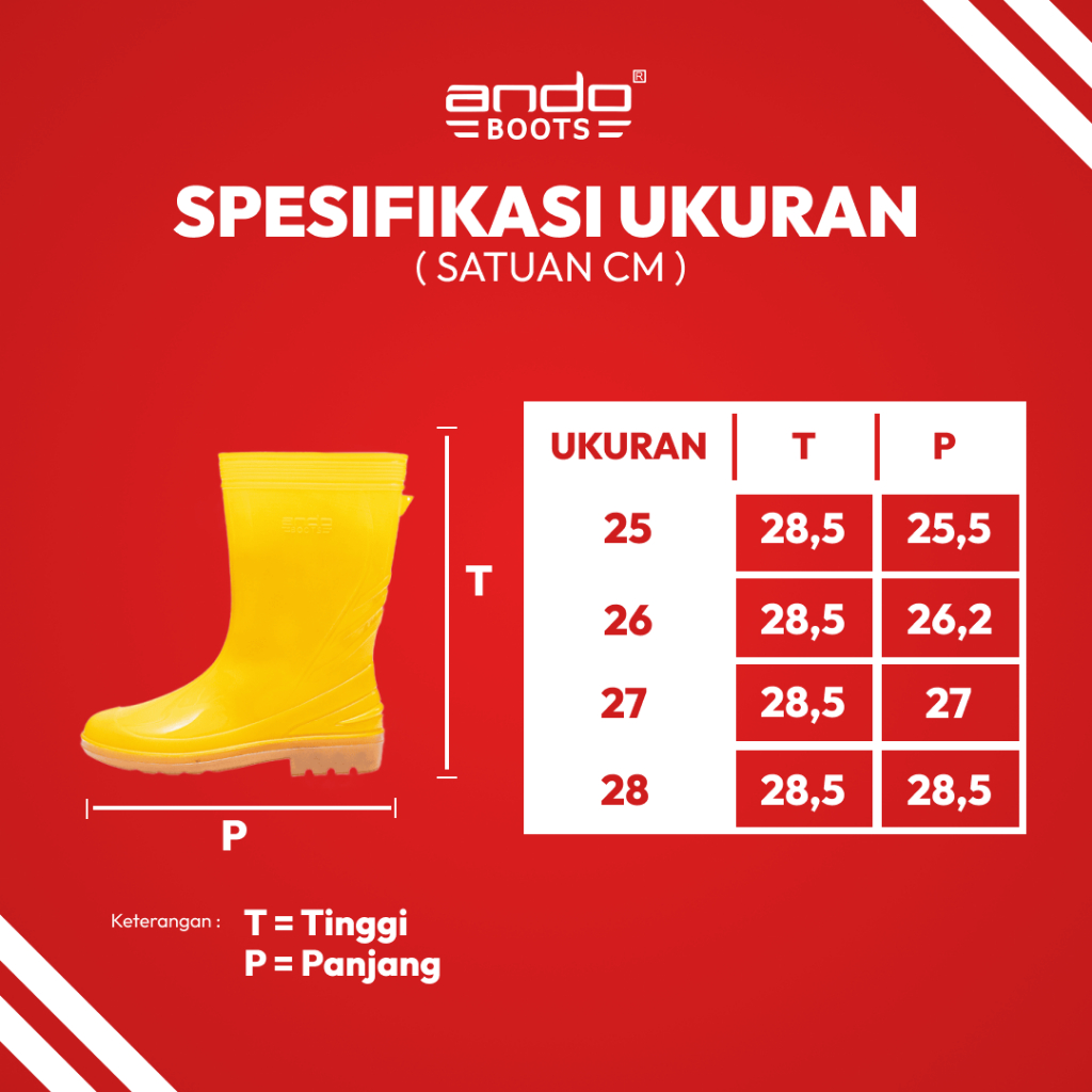 Ando Boots Hammer – Sepatu Boots Pendek PVC Yellow/Penthel Size 25–28