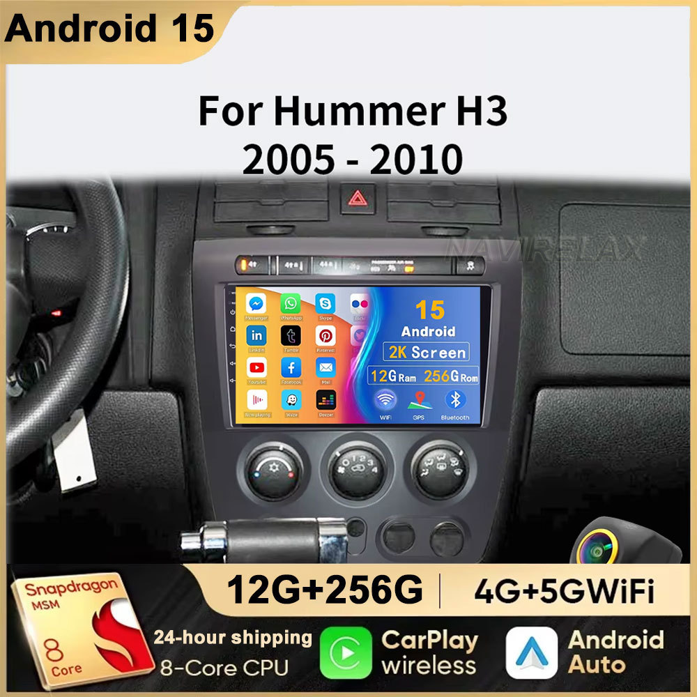 Android 15 For Hummer H3 1 2005 - 2010 Car Rao Multimea Video Player Navigation stereo GPS Wireless Carplay 4G WIFI BT QLED