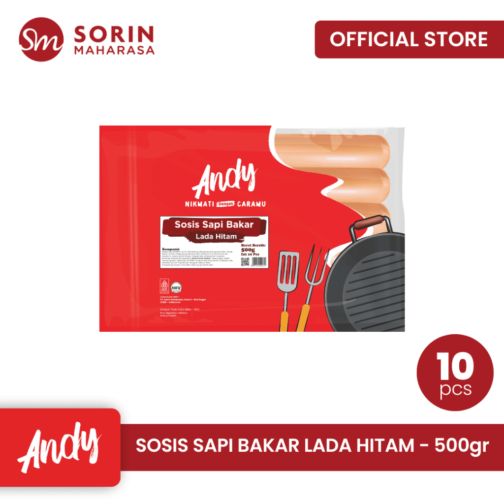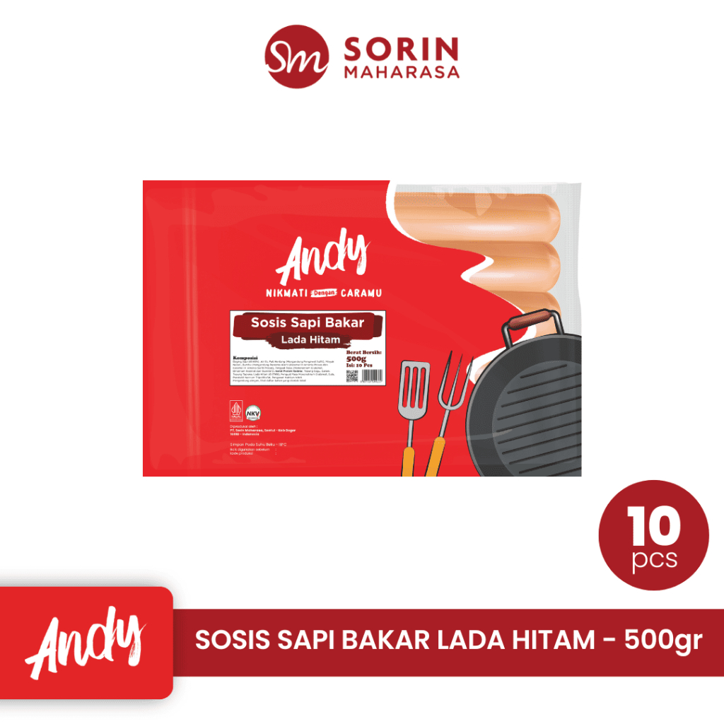 Andy Sosis Sapi Bakar Blackpepper Isi 10 pcs 500 gr | Sosis Lada Hitam | Frozen Food