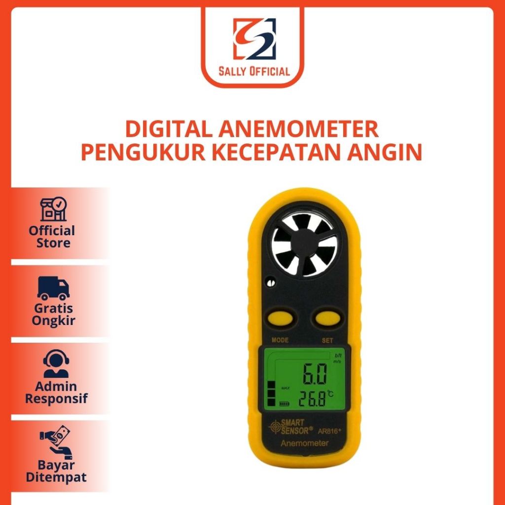 Anemometer Digital Pengukur kecepatan angin thermometer Anemo Meter