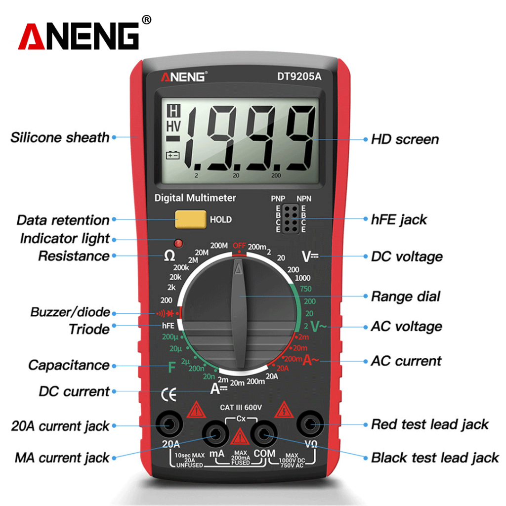 Aneng DT9205A-3 Digital Multimeter hFE Transistor Buzzer Original