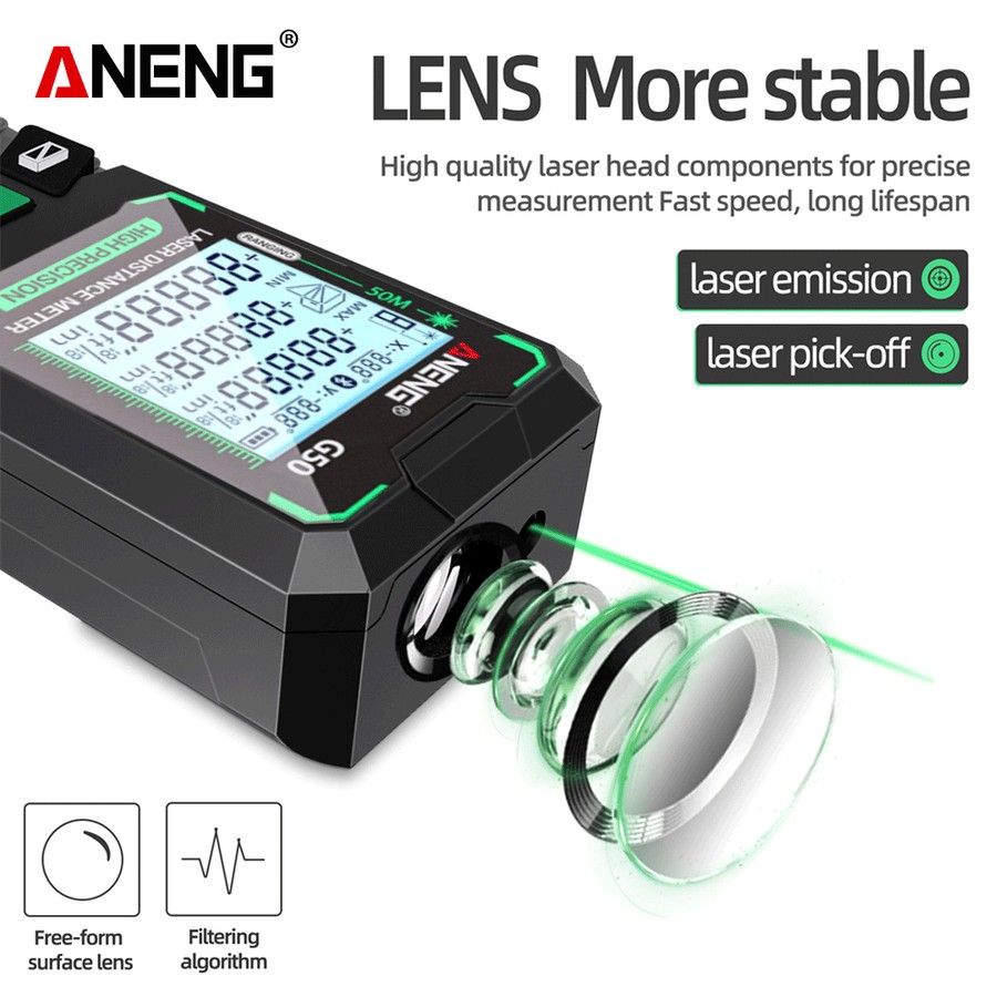 Aneng G50 Green Laser Distance Meter Ruler 0.5~1 Second Flash Test Laser Ruler 50M