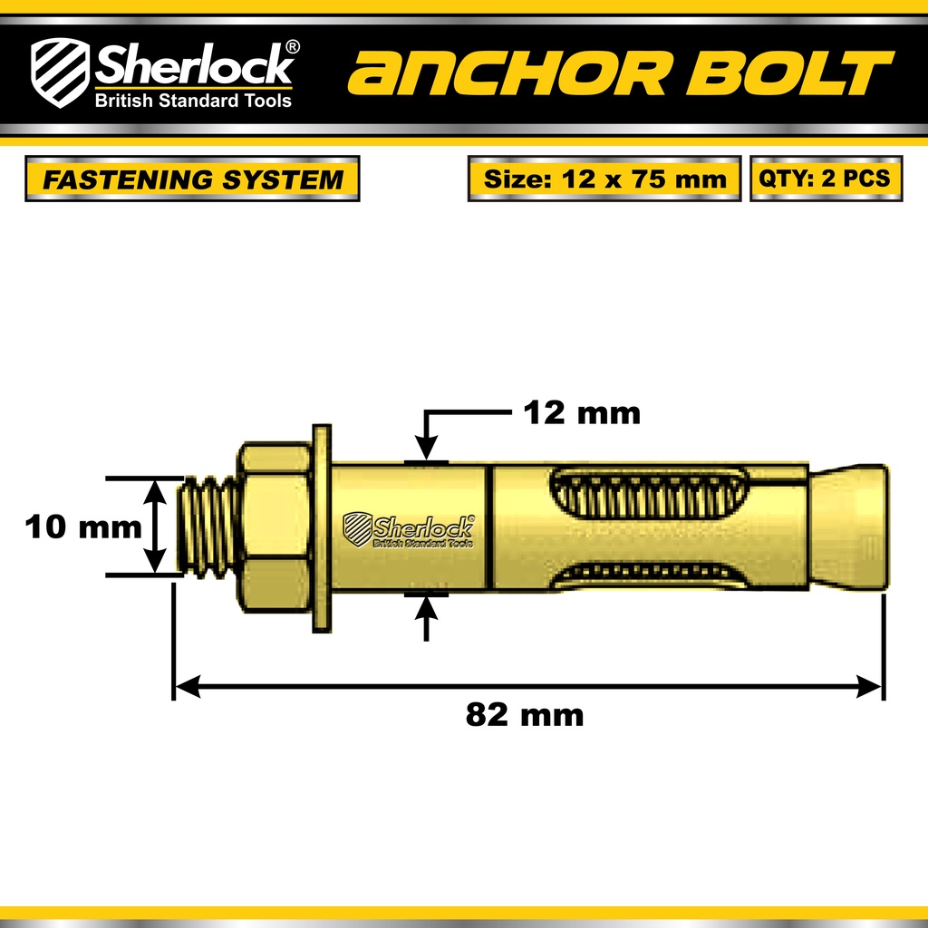 Angkur Baut Anchor Bolt Dinding Beton Sherlock 12 x 75 mm (isi 2 pcs)