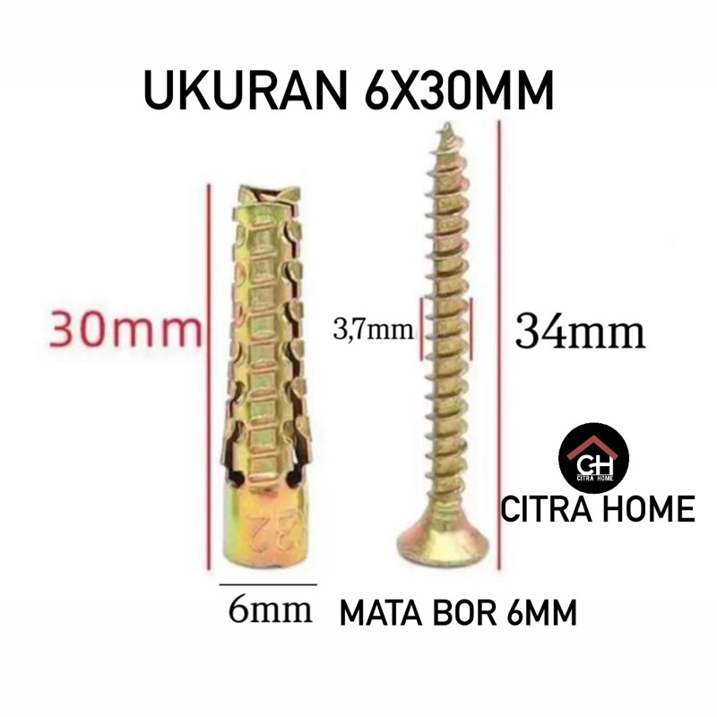 Angkur Baut Pengait Skrup Tembok Zinc Plated Expasion Anchor 6x30mm