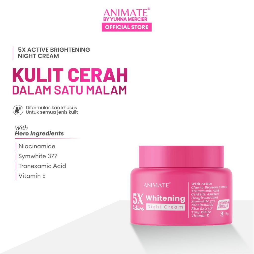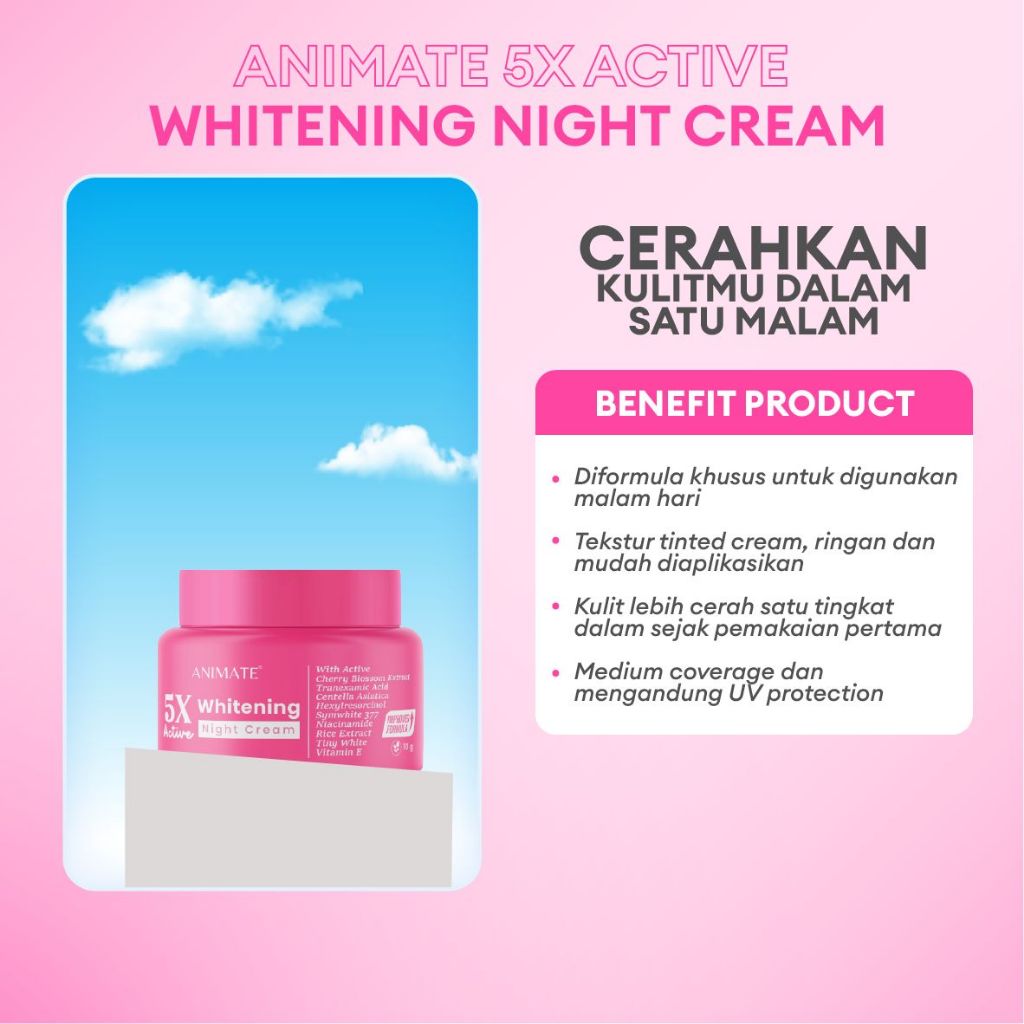 Animate 5X Active Whitening Night Cream / Krim Malam 10 gr Krim Membantu Mencerahkan Kulit Kusam Glowing Natural Melembabkan Semua Jenis Kulit