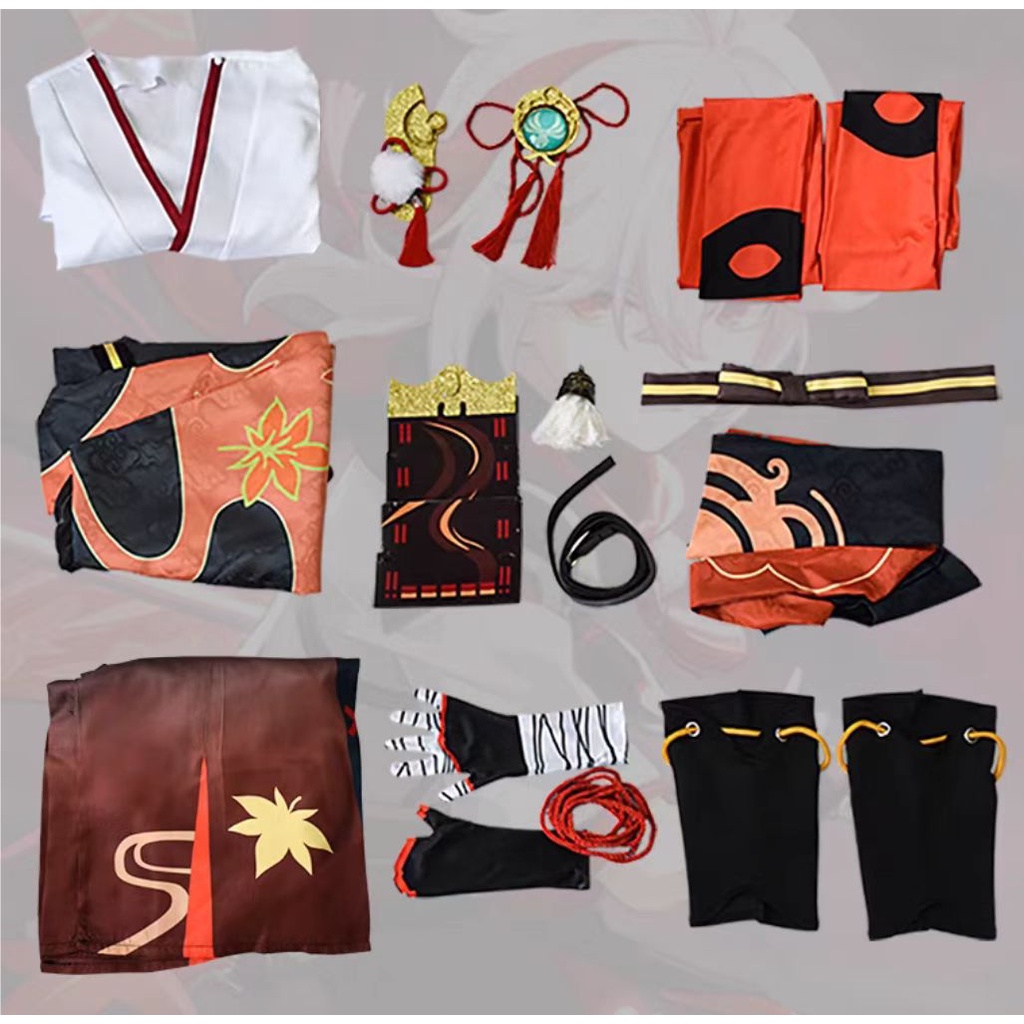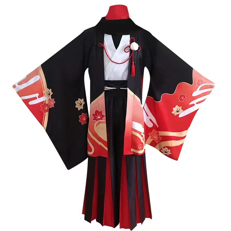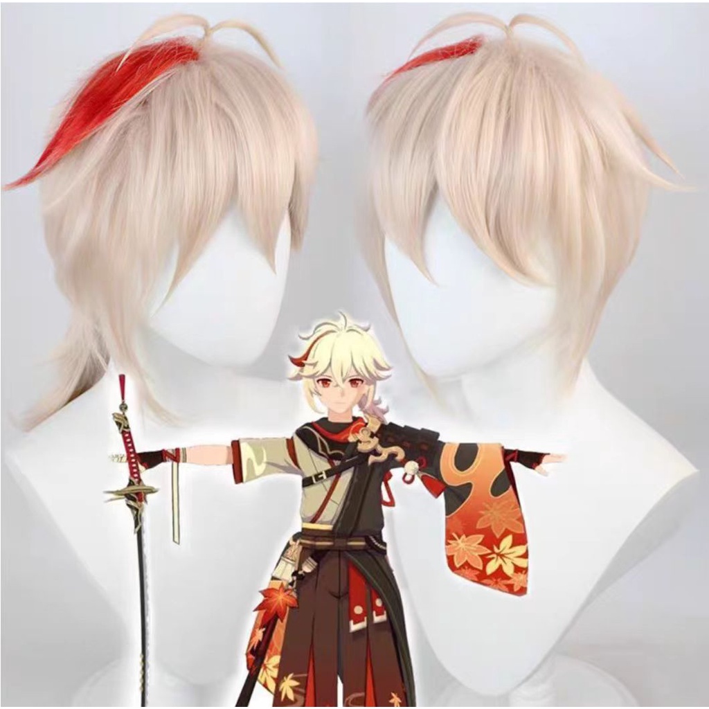 Anime Genshin Impact Five Kasen Cosplay Kaedehara Kazuha Cosplay Costume Kimono Halloween Carnival Samurai Costume Prop Wig