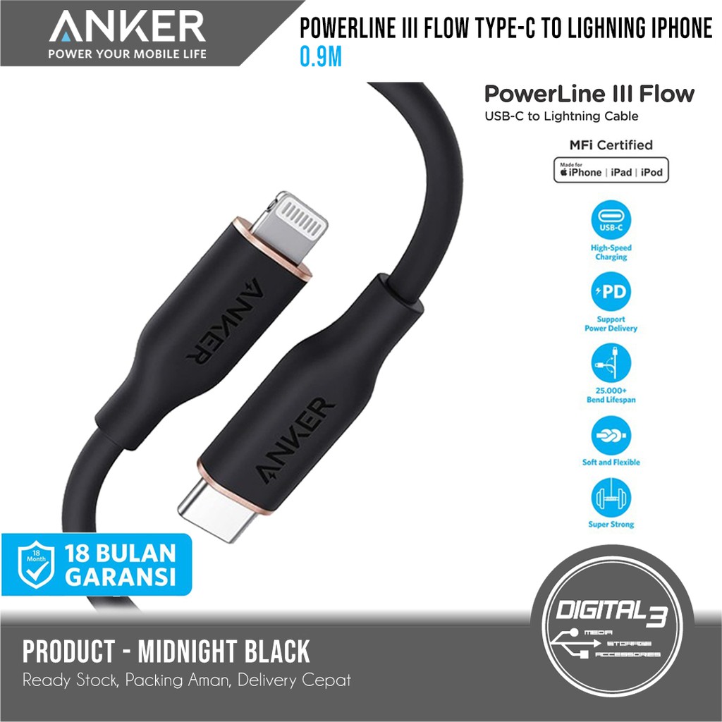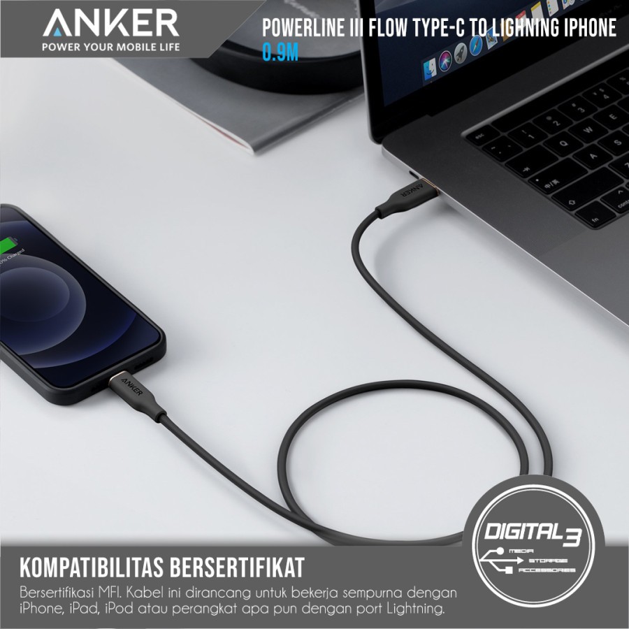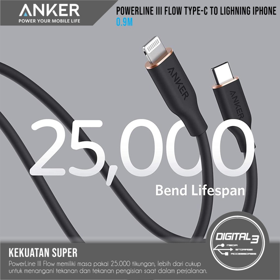 Anker Powerline III Flow Type C to Lightning Cable 0.9M Kabel Iphone 3 feet (A8662)