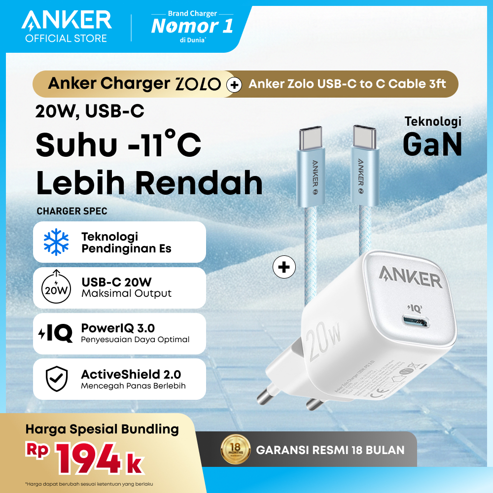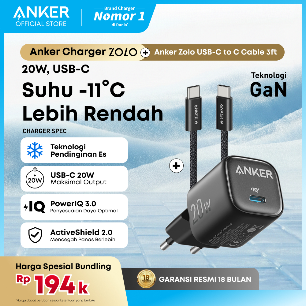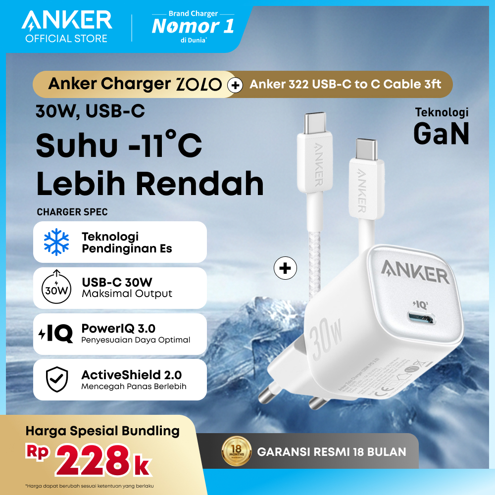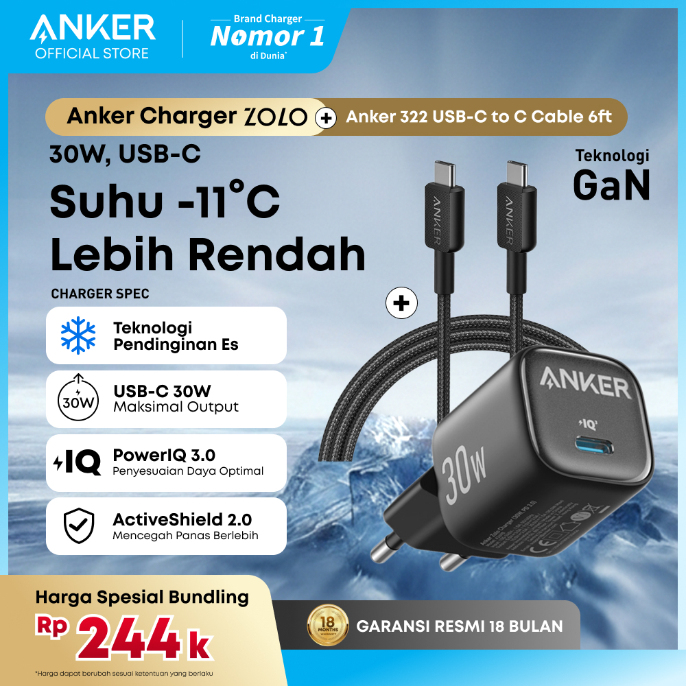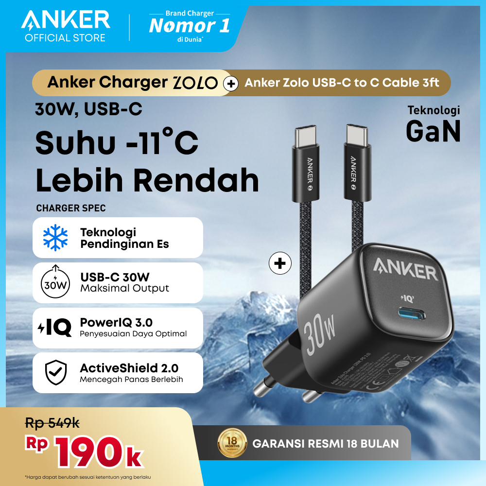 Anker Zolo GaN 30W 20W Adaptor Kepala Charger iPhone 17 16 15 14 13 Samsung Type C PD Ice-Cooled Fast Charging - A2698 / A2699 / B2698 / B2699