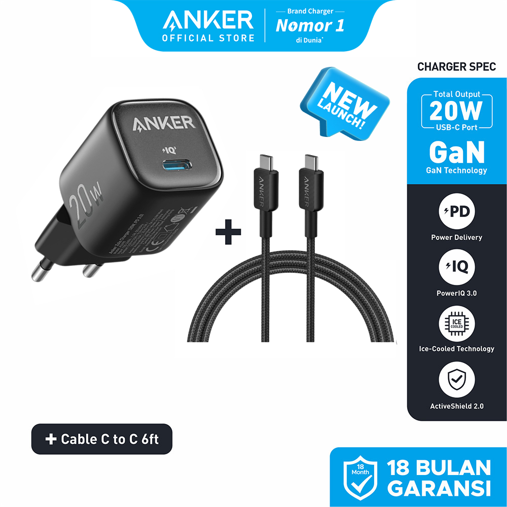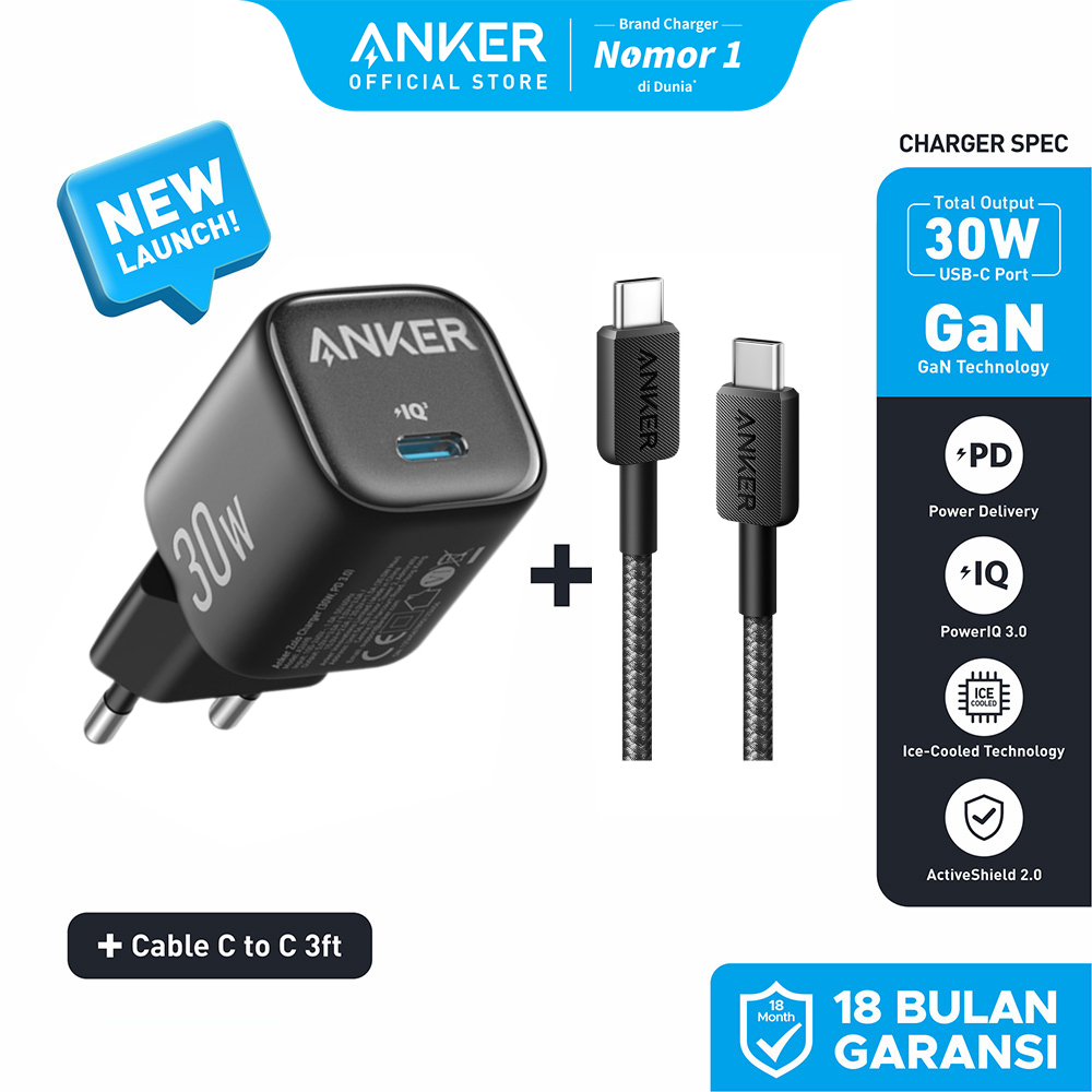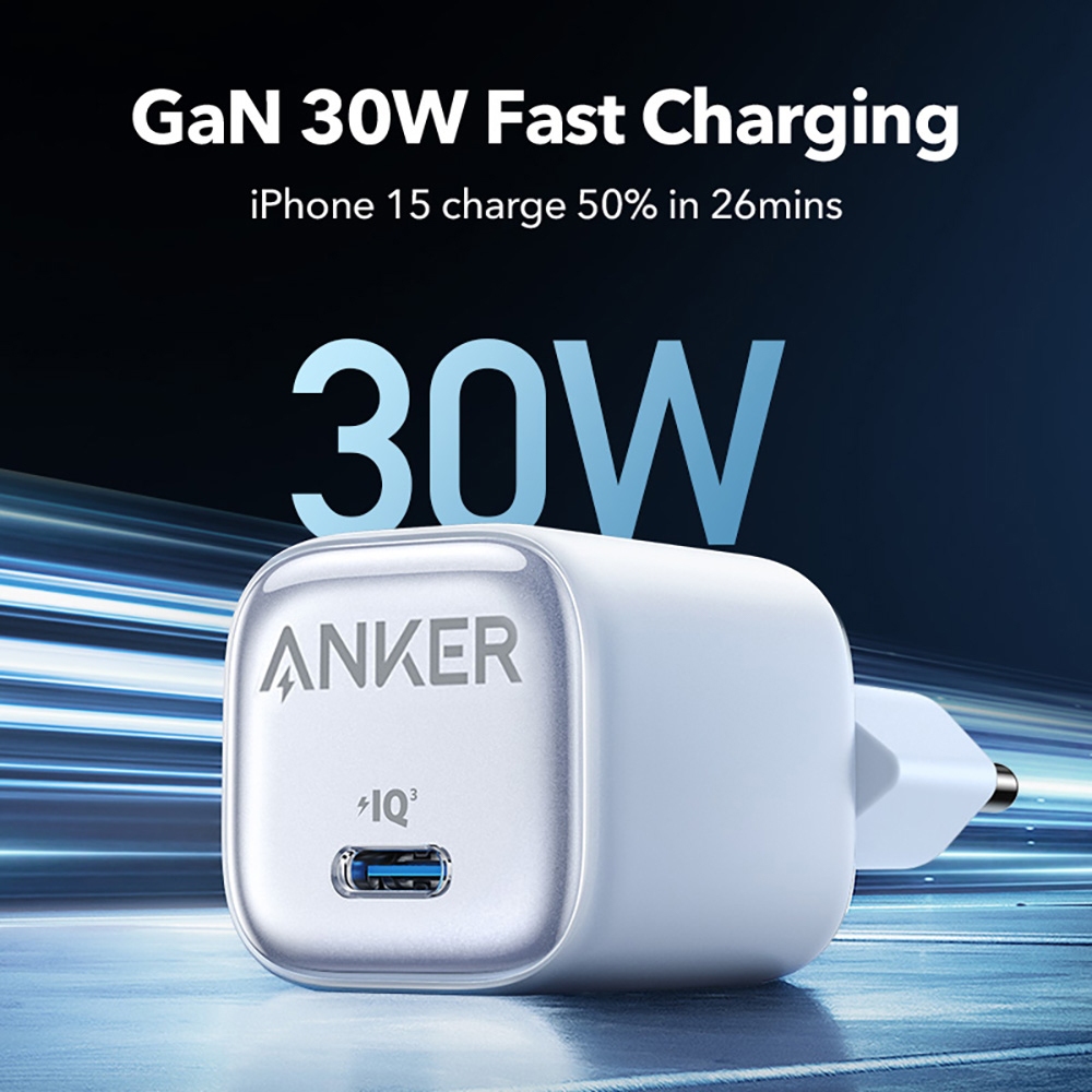Anker Zolo GaN 30W 20W Adaptor Kepala Charger iPhone 17 16 15 14 13 Samsung Type C PD Ice-Cooled Fast Charging - A2698 / A2699 / B2698 / B2699