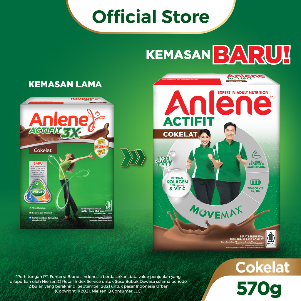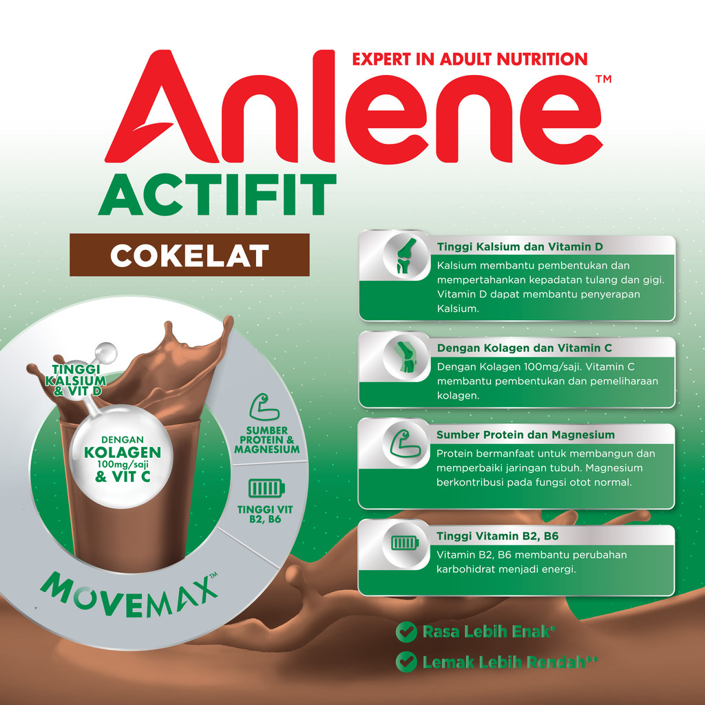 Anlene Actifit 3X Susu Bubuk Dewasa Cokelat 570g - Nutrisi Tinggi Kalsium Untuk Tulang, Sendi, dan Otot