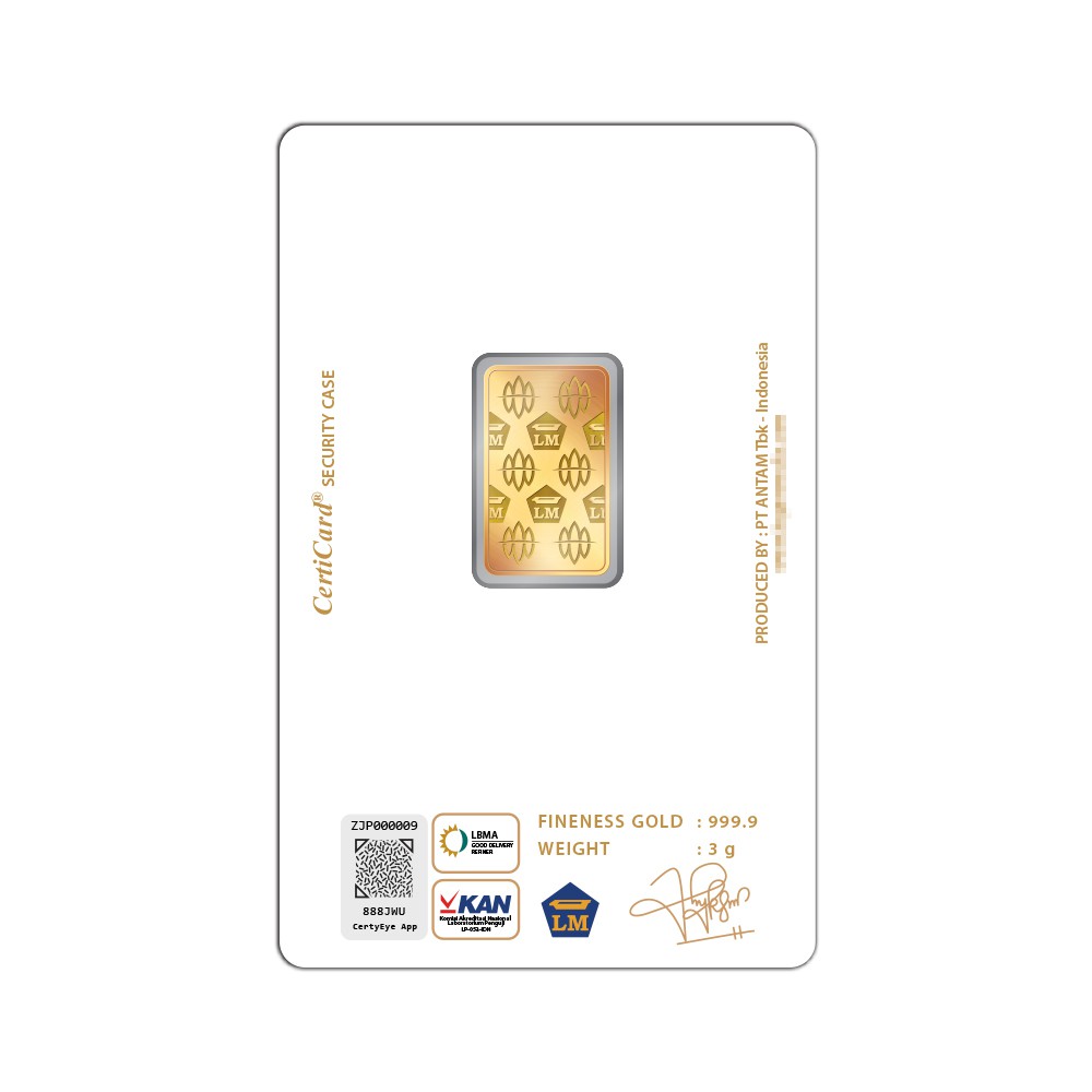Antam Logam Mulia Keping Emas [3 g/ 999.9‰ Fine Gold Certificate]